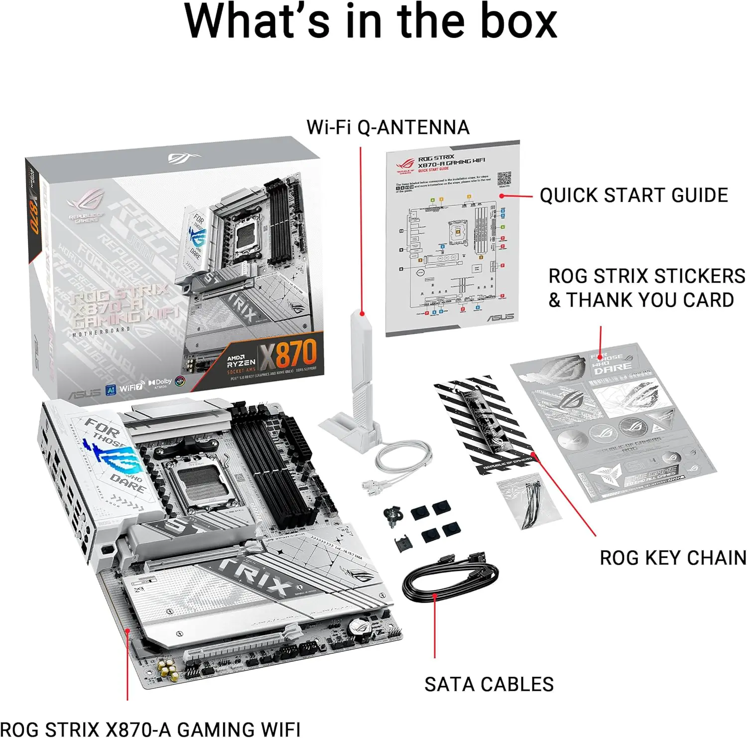 ASUS ROG STRIX X870-A GAMING WIFI AMD AM5 X870 ATX motherboard 16+2+2 power stages, Dynamic OC Switcher, Core Flex, DDR5 AEMP, WiFi 7, 4x M.2, PCIe 5.0, Q-Release Slim, USB4, AI OCing & Networking | 90MB1IF0-MVAAY0