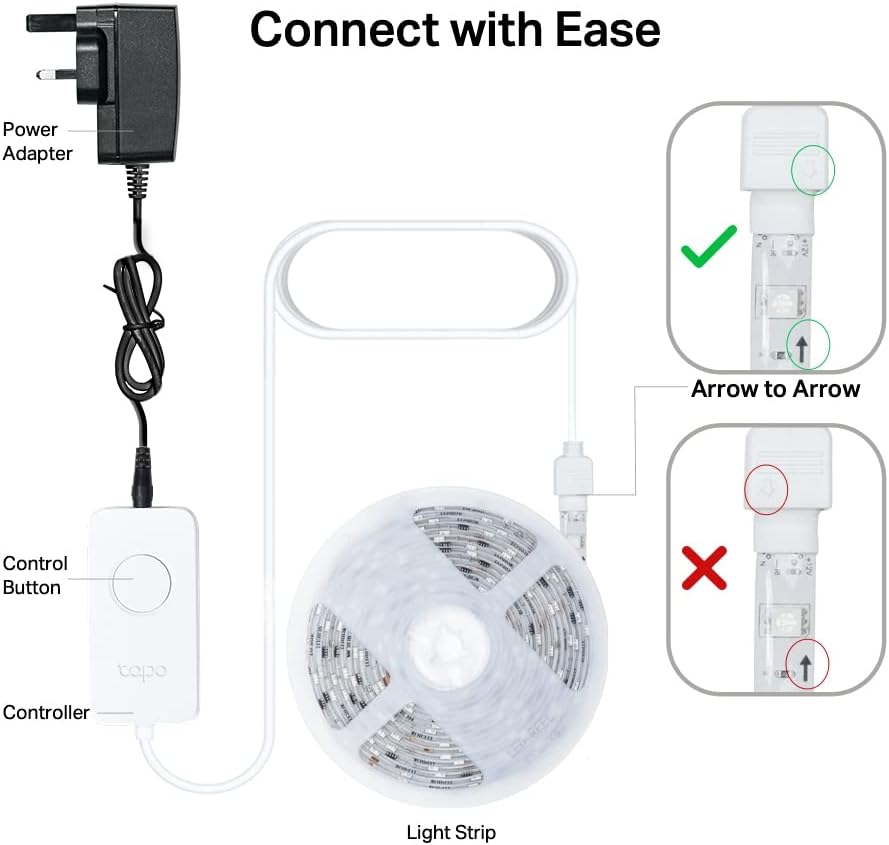 - Smart Lighting Controls-Schedule your light strip for effortless automation. Combine it with other Tapo devices for seamless control, especially when you’re sprucing up your home with consistent lighting