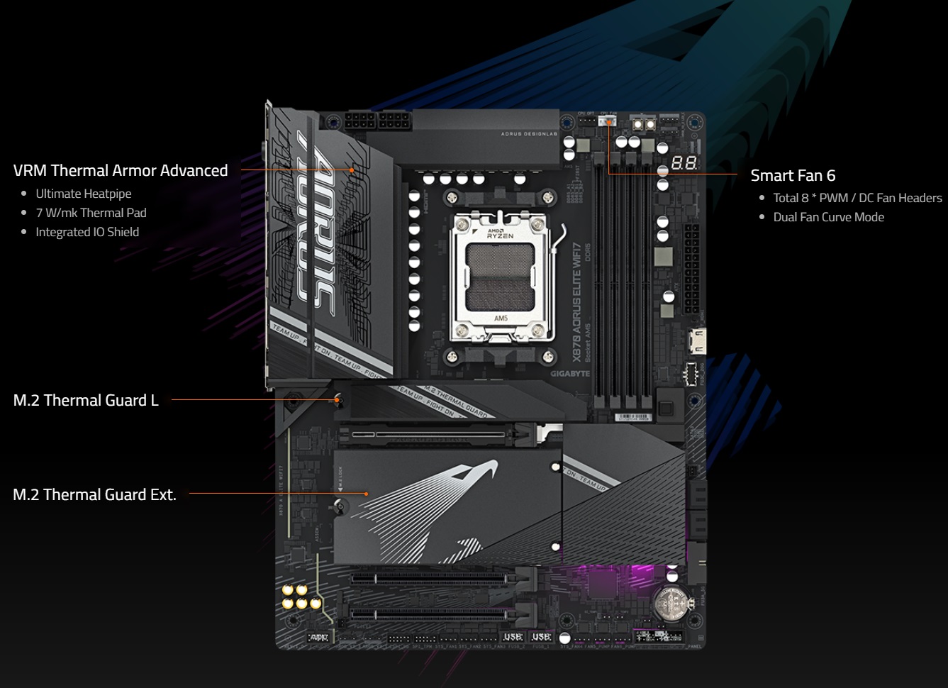 • Efficient Thermal:VRM Thermal Armor Advanced & M.2 Thermal Guard L