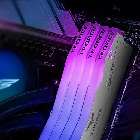 TEAMGROUP T-Force Delta RGB DDR5 Ram 32GB (2x16GB) 5200MHz PC5-41600 CL40 Intel XMP 3.0 & AMD Expo Compatible Desktop Memory Module Ram White FF4D532G6800HC34BDC0
