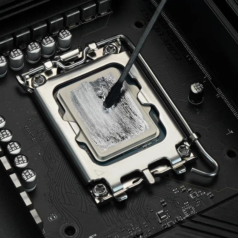• Gallium-Based Alloy: Stays liquid at room temperature, allowing the thinnest possible application layer for efficient heat transfer.