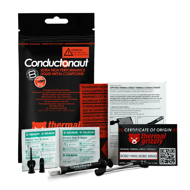 Thermal Grizzly Conductonaut Extreme 1g – Ultra-High Conductivity Liquid Metal for CPUs/GPUs, Gallium-Based, Metal Tip Applicator, -50°C to 200°C, NOT for Aluminum Use
