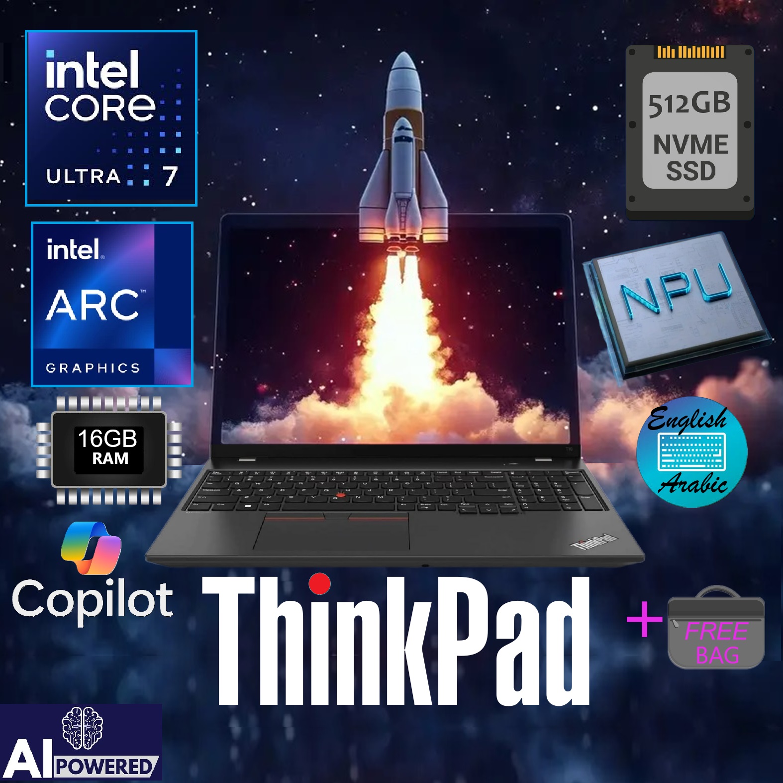 LENOVO AI PC ThinkPad E16 Gen 2 Intel® Core™ Ultra 7 155H with AI Boost, up to 11 TOPS | 16GB DDR5 RAM , 512GB SSD NVMe® | Intel® Arc™ Graphics | 16 inch WUXGA IPS Display | Backlit, English Arabic Keyboard | DOS | IR Camera , Fingerprint Reader | Bundled Lenovo® Bag | BLACK