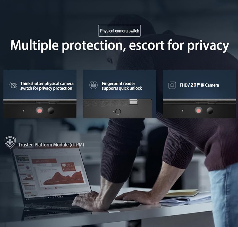 - IR camera for Windows® Hello (facial recognition), Camera privacy shutter
