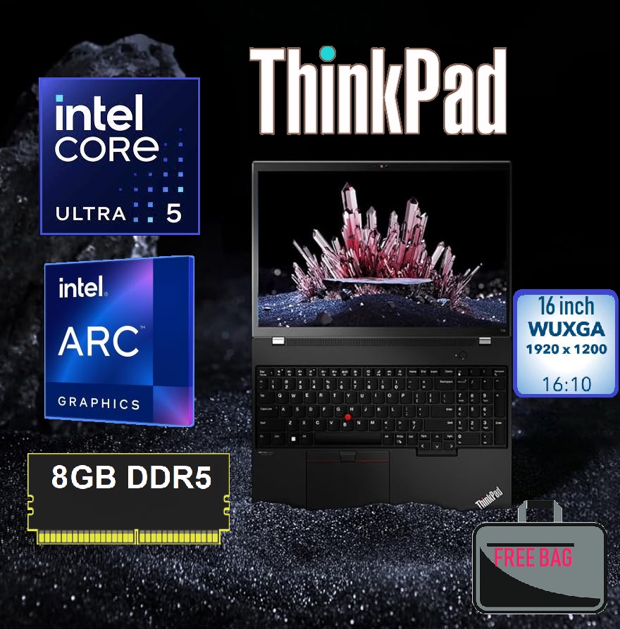Lenovo ThinkPad E16 Gen 2 Intel® Core™ Ultra 5 125H with Intel® AI Boost |8GB DDR5 RAM ; 512GB SSD | 16 inch WUXGA IPS Display | Intel® Arc™ Graphics | DOS | Fingerprint Reader | English Arabic Keyboard | Black with Carry Case