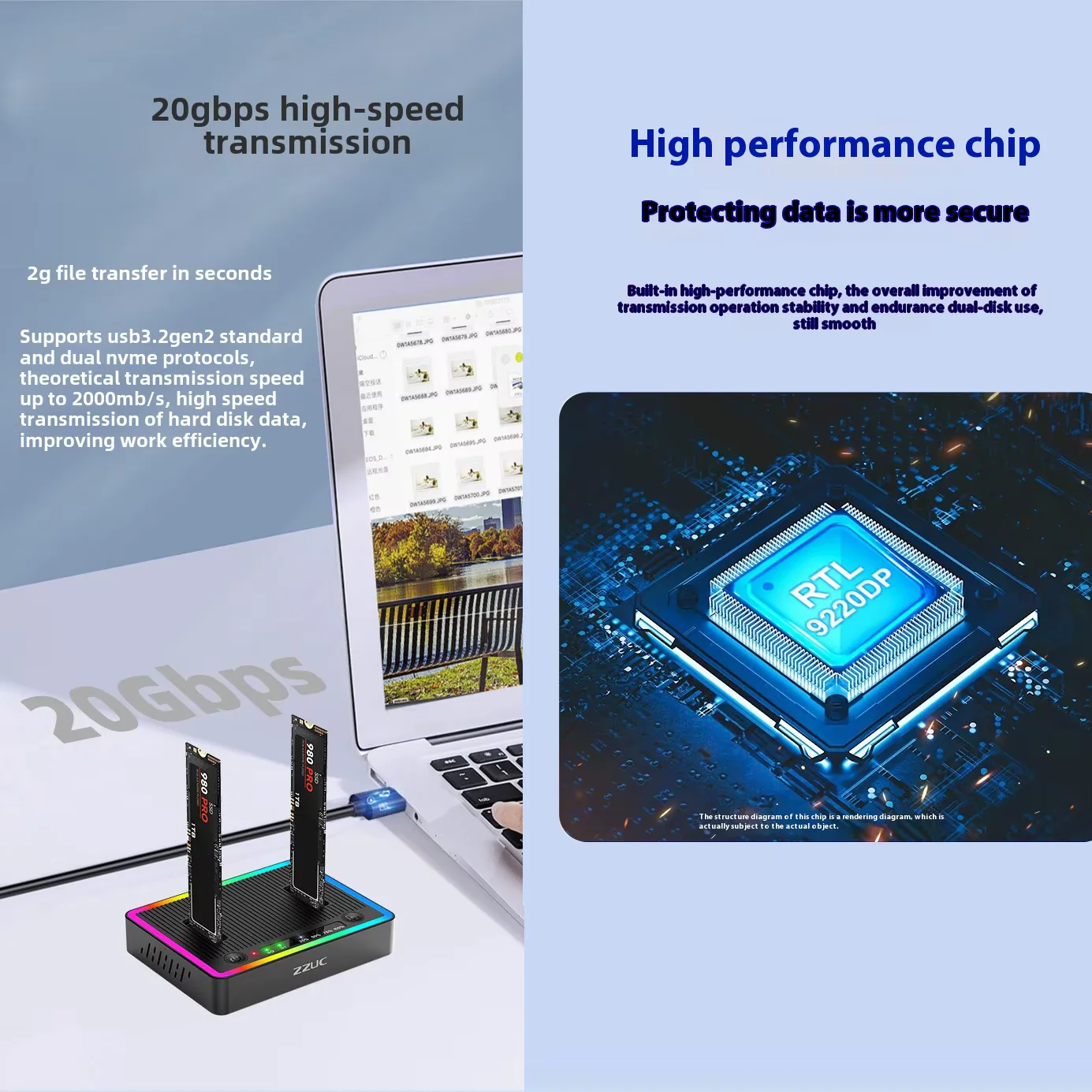 - Built-In High-Performance Chipset : RTL9220DP chip ensures high-speed data handling, efficient heat dissipation, and system stability during prolonged use.