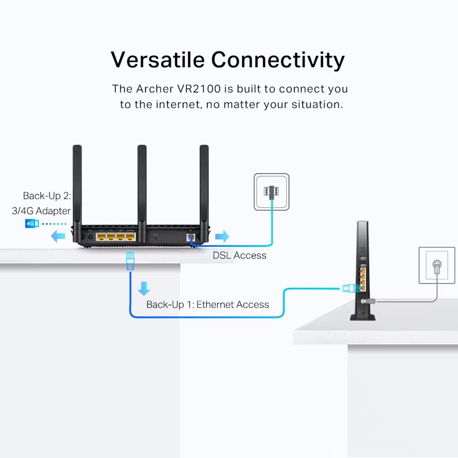 TP-Link AC2100 Wireless MU-MIMO VDSL/ADSL Modem Router, Dual-Band, Wi-Fi Speed Up To 2.1 Gbps, OneMeshTM, Versatile Connectivity, 4 x Gigabit Ports +1x 3.0 USB Port, Easy setup (Archer VR2100)