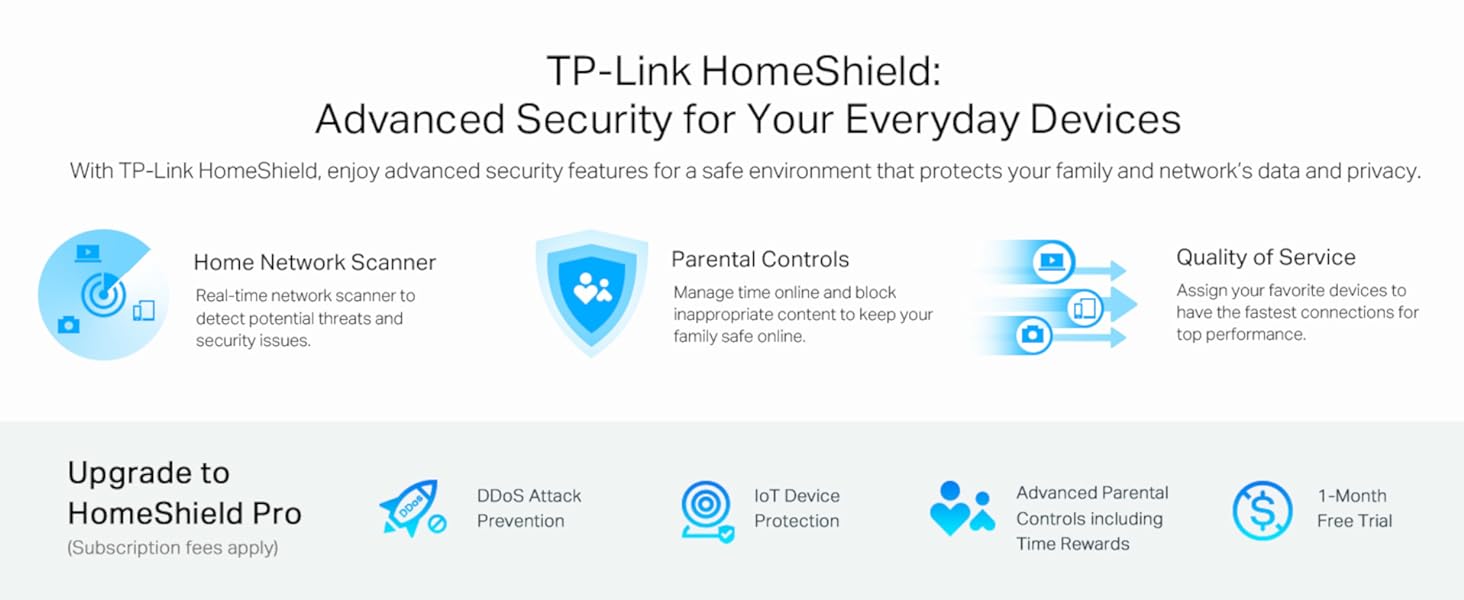 - TP-Link HomeShield: Enhanced security defends against the latest cyber threats.