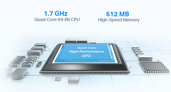 - Powerful CPU: 1.7 GHz quad-core processor ensures fast transmission speeds and smooth operation of numerous devices and applications