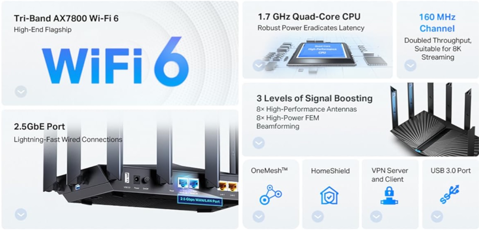 AX7800 Tri-Band Gigabit Wi-Fi 6 Router