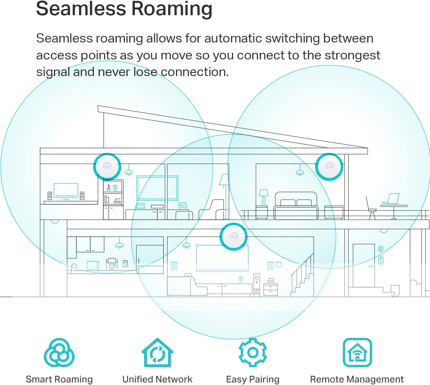 Supports Mesh WiFi, Seamless Roaming*(Omada Mesh & Seamless Roaming require the use of Omada SDN controllers), WPA3, Band Steering, Load Balancing, Airtime Fairness and Beamforming technologies.