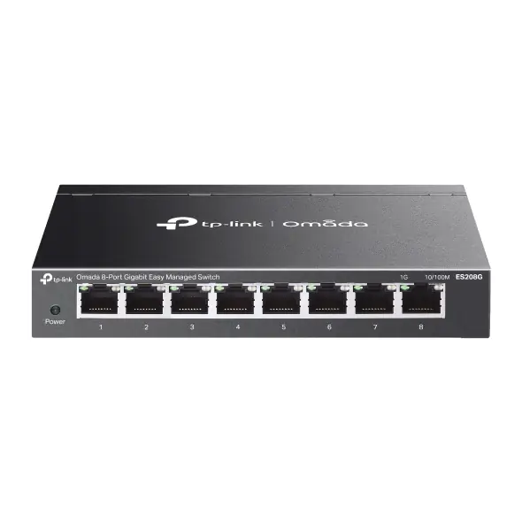 TP-Link Omada ES208G 8-Port Gigabit Easy Managed Switch, Fanless, Cloud Managed, VLAN, QoS, Port Isolation, Cable Test, Loop Prevention, Compact Metal Design