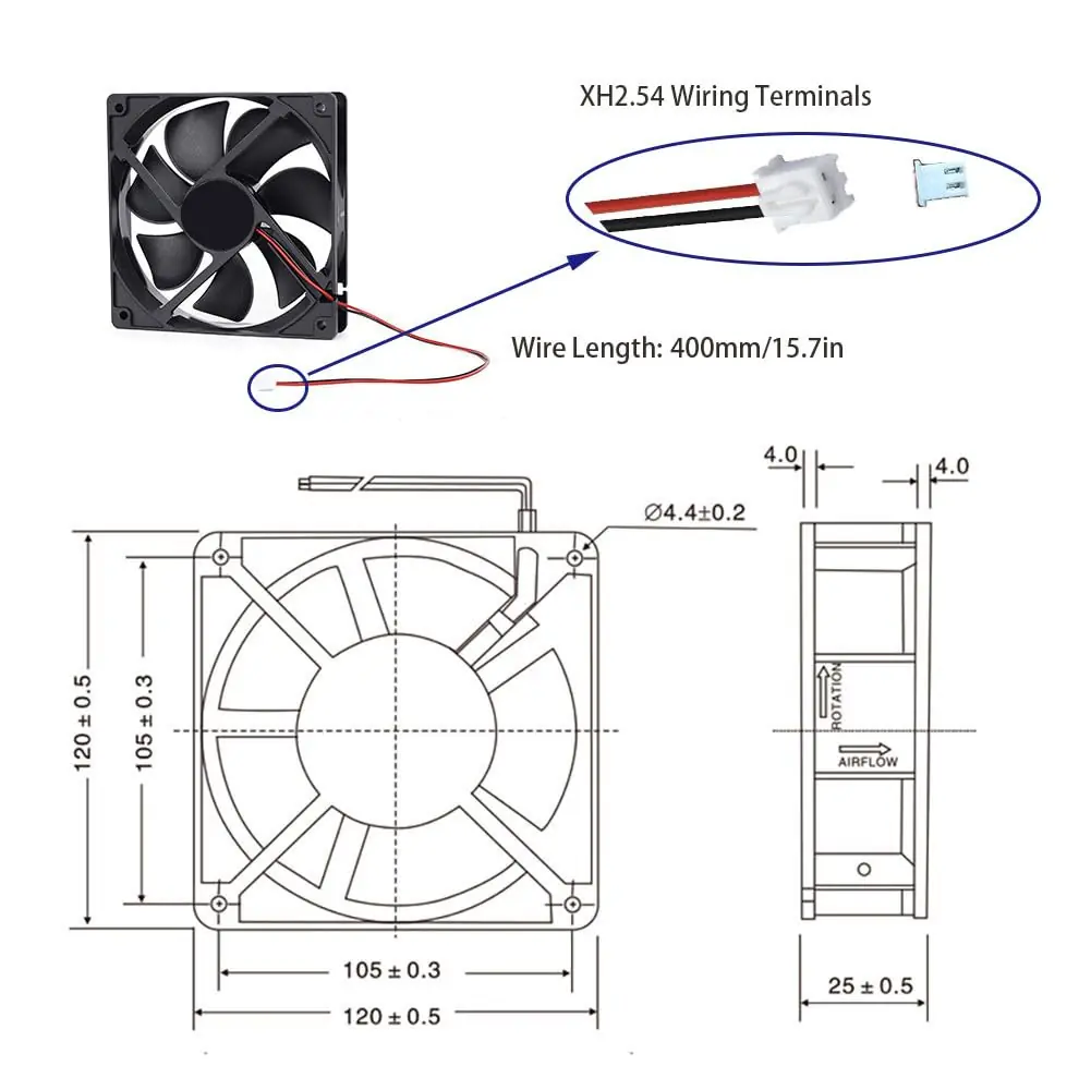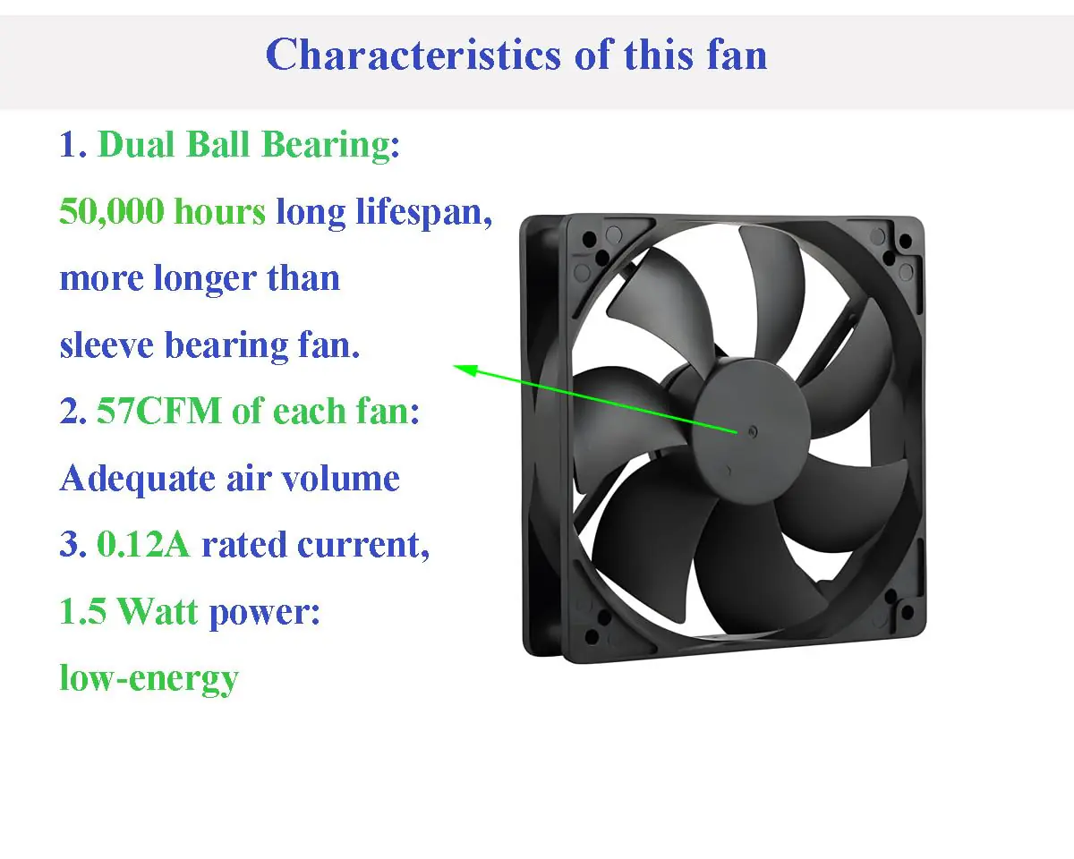 - Universal Fit & Easy Installation – Standard 120x120x25mm size fits most fan mounts; simply connect positive (red) and negative (black) wires correctly.