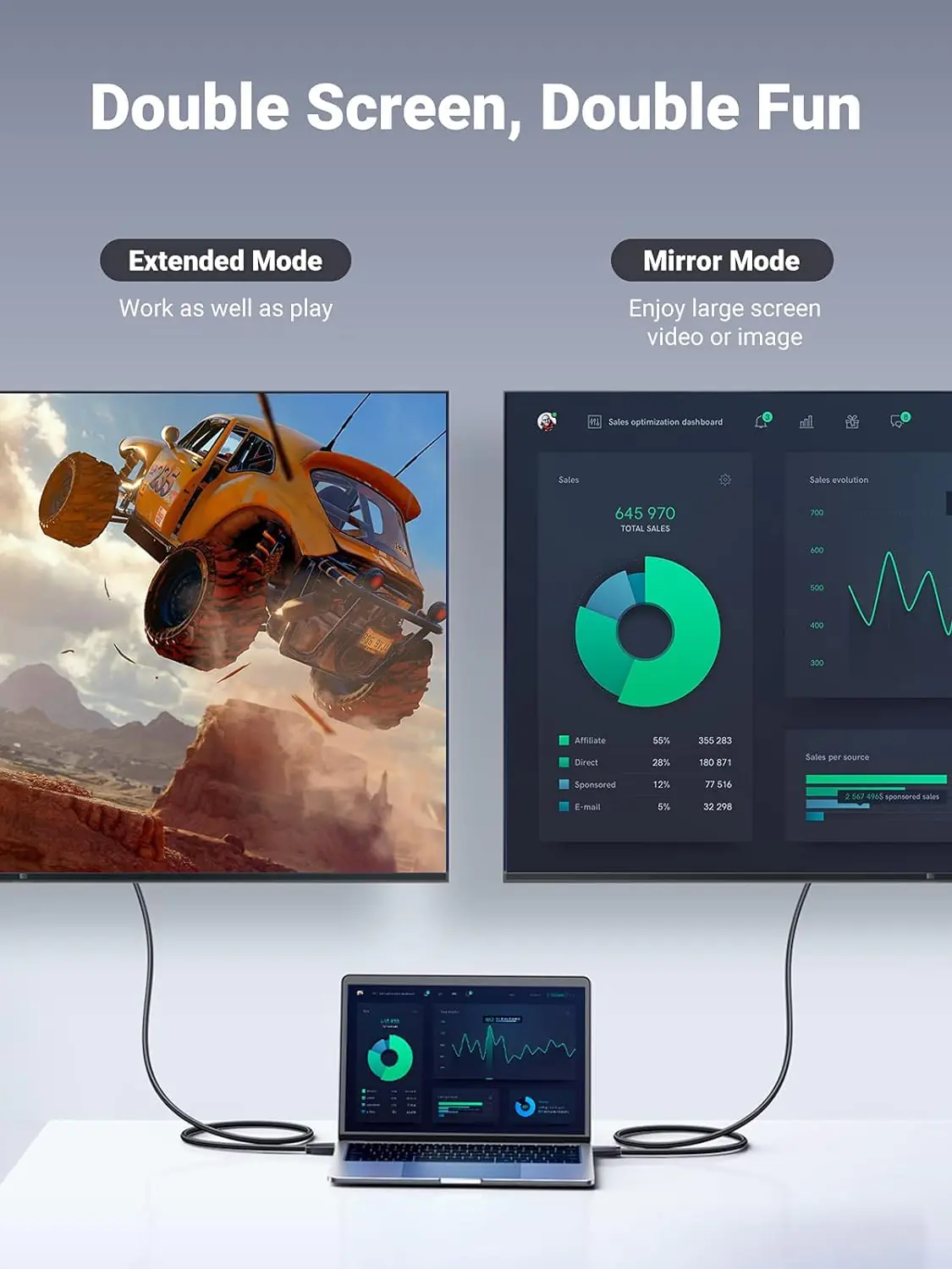 | Compatibility | DisplayPort-enabled laptops/desktops → HDMI monitors/projectors/TVs |