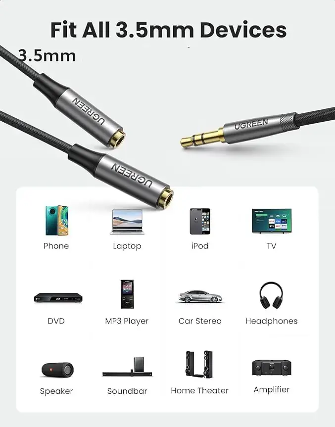 - Universal Compatibility – Fits all devices with a standard 3.5mm TRS audio jack, including smartphones, tablets, laptops, MP3 players, PCs, and speakers.