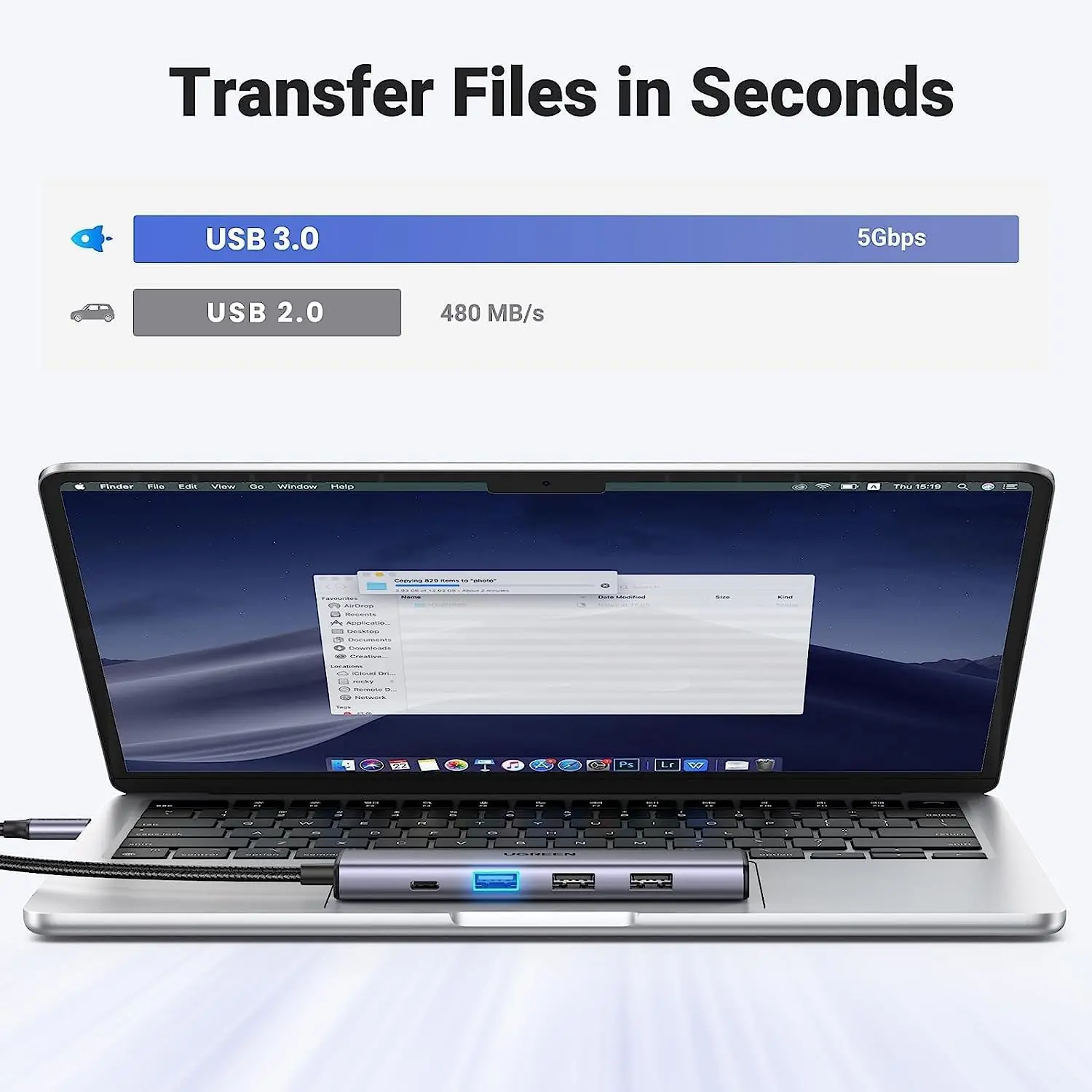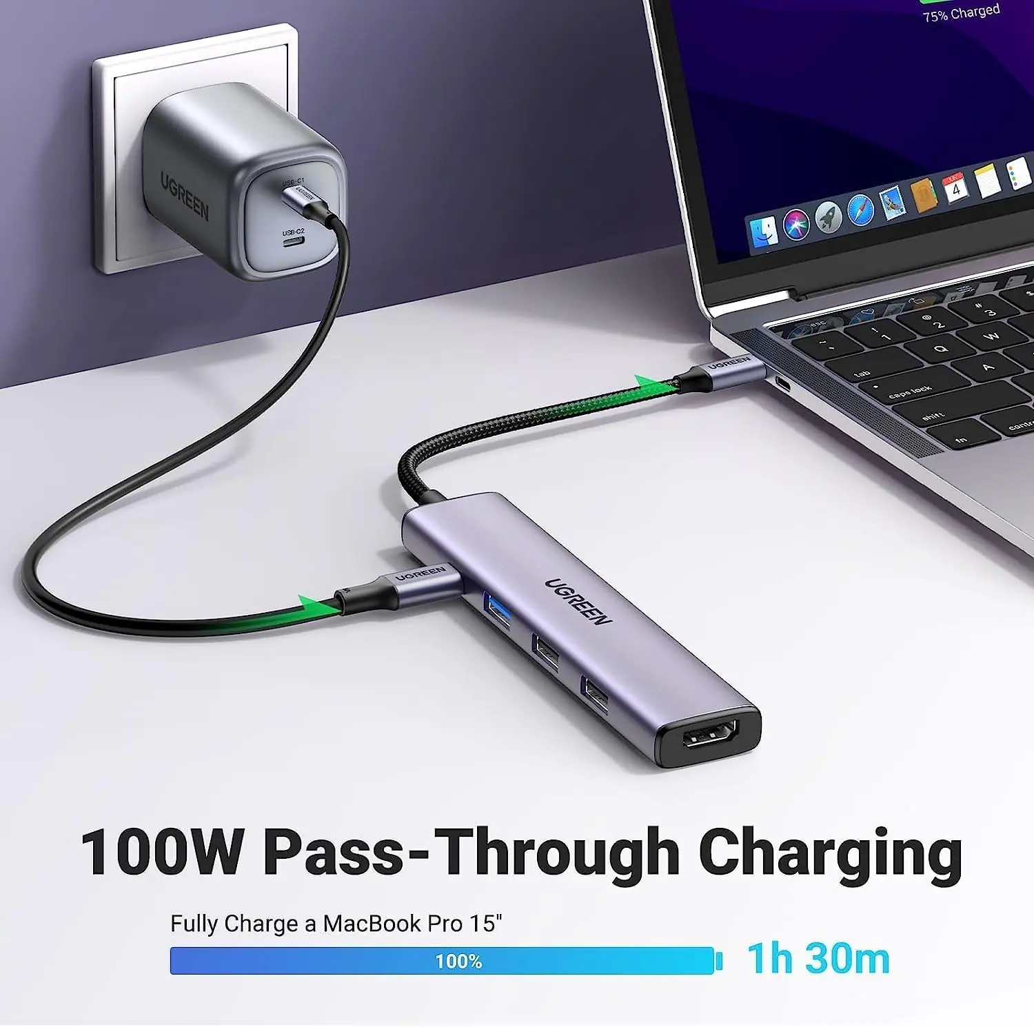UGREEN 5-in-1 USB-C Multiport Adapter | 4K HDMI, 100W PD, USB 3.0 & USB 2.0 | Ultra-Fast File Transfer | Broad Compatibility | Compact & Travel-Ready Hub