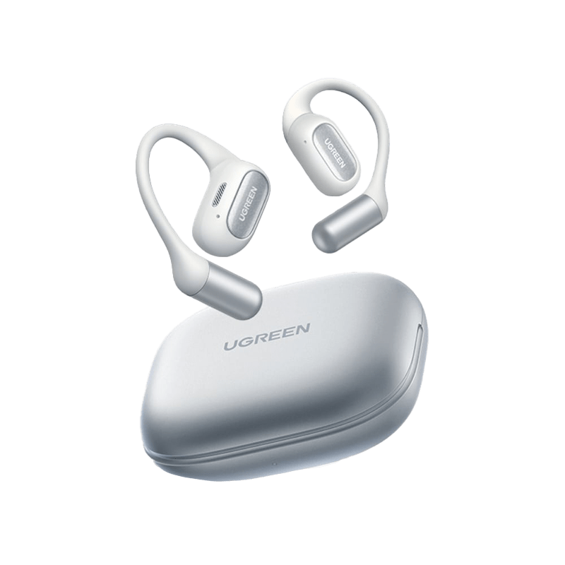 UGREEN FitBuds White Open-Ear Wireless Earbuds with Bluetooth 6.0, Dual Connection, IPX5 Resistance, Metal-Silica Build, USB-C Fast Charging, Ambient-Aware Sports Design