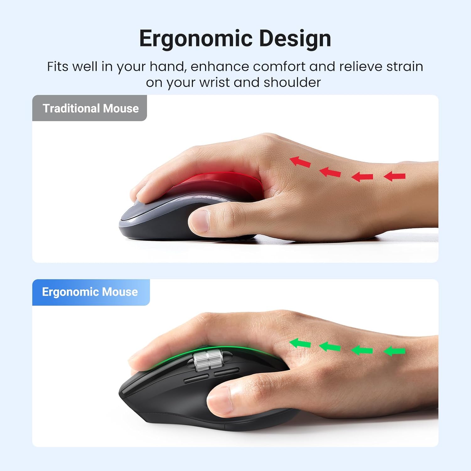 - Premium Material: This Ugreen ergonomic mouse features a soft rubber design on the sides and an ergonomic shape for a comfortable grip. It’s easy to use regardless of hand size.