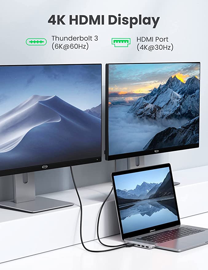 UGREEN MacBook Pro USB C Hub Adapter 5 IN 2 HDMI 4K Type C Port Thunderbolt 3 for Video, 100W PD Charging – 10Gbps, USB 3.0, Compatible with Macbook Pro & Macbook Air