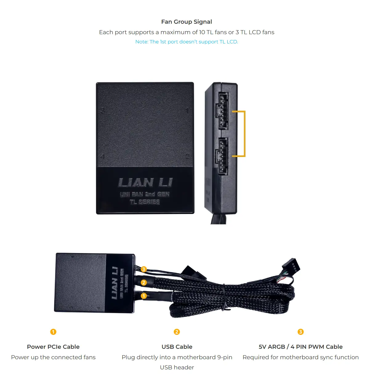 - Support up to 10 fans per controller port via a daisy-chain POGO cable.