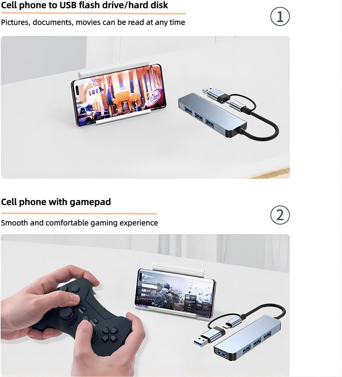 USB C HUB, 4-in-1 USB C Adapter Docking Station with USB3.0 * 4, Compatible with MacBook Pro/Air, Other Type C Laptops Devices.