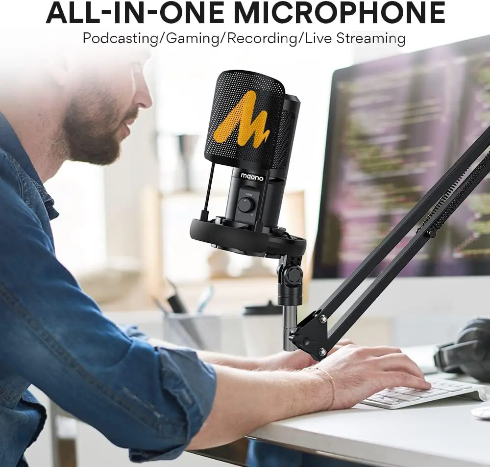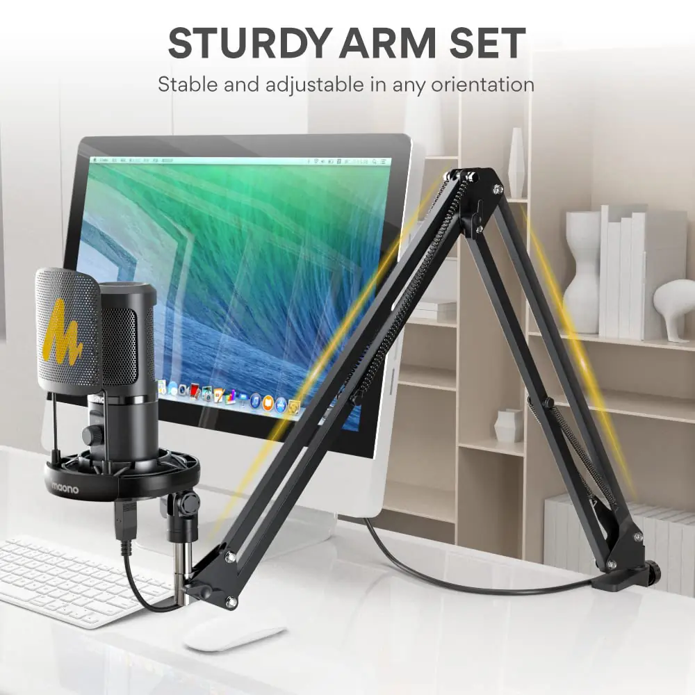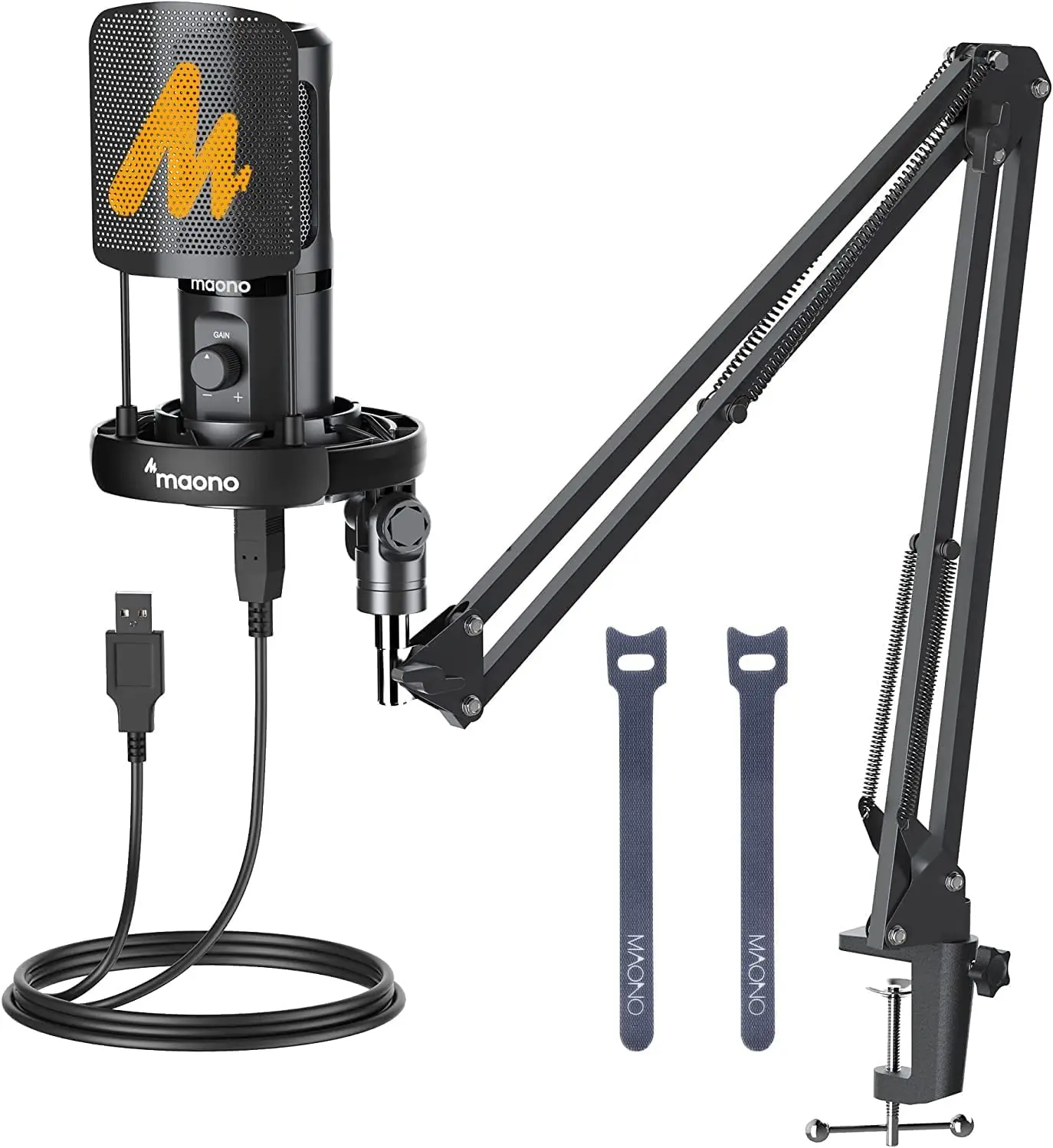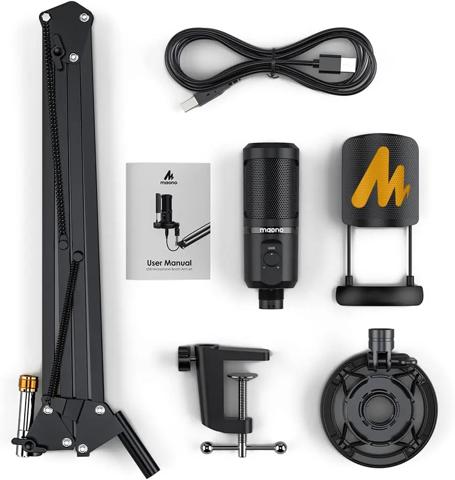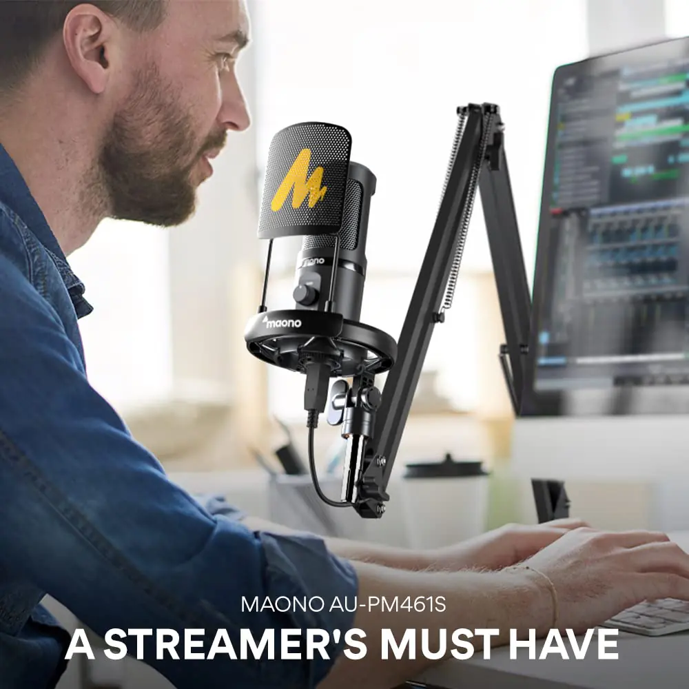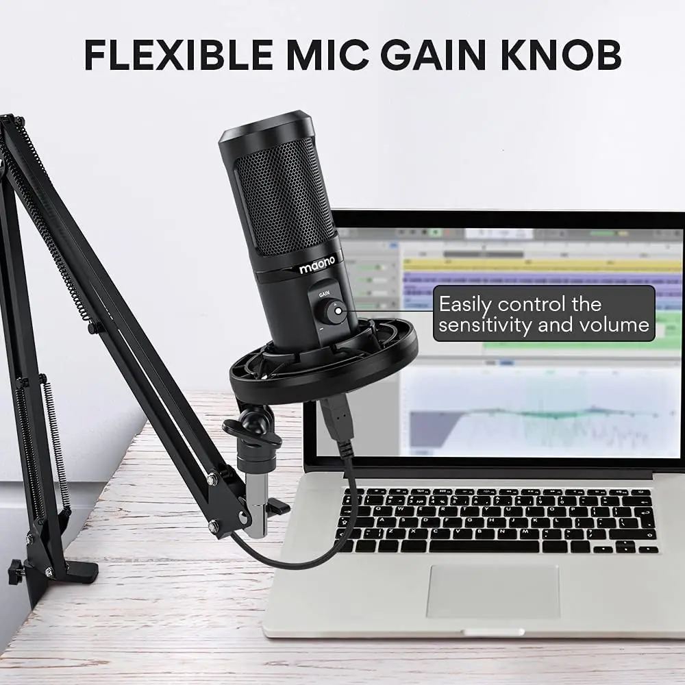 USB Condenser Mic for PC Gaming and Singing, ALL-IN-ONE Microphone Kit with Mic Gain, Boom Arm, Pop Filter for YouTube Recording, Gaming, Podcasting | Maono PM461S