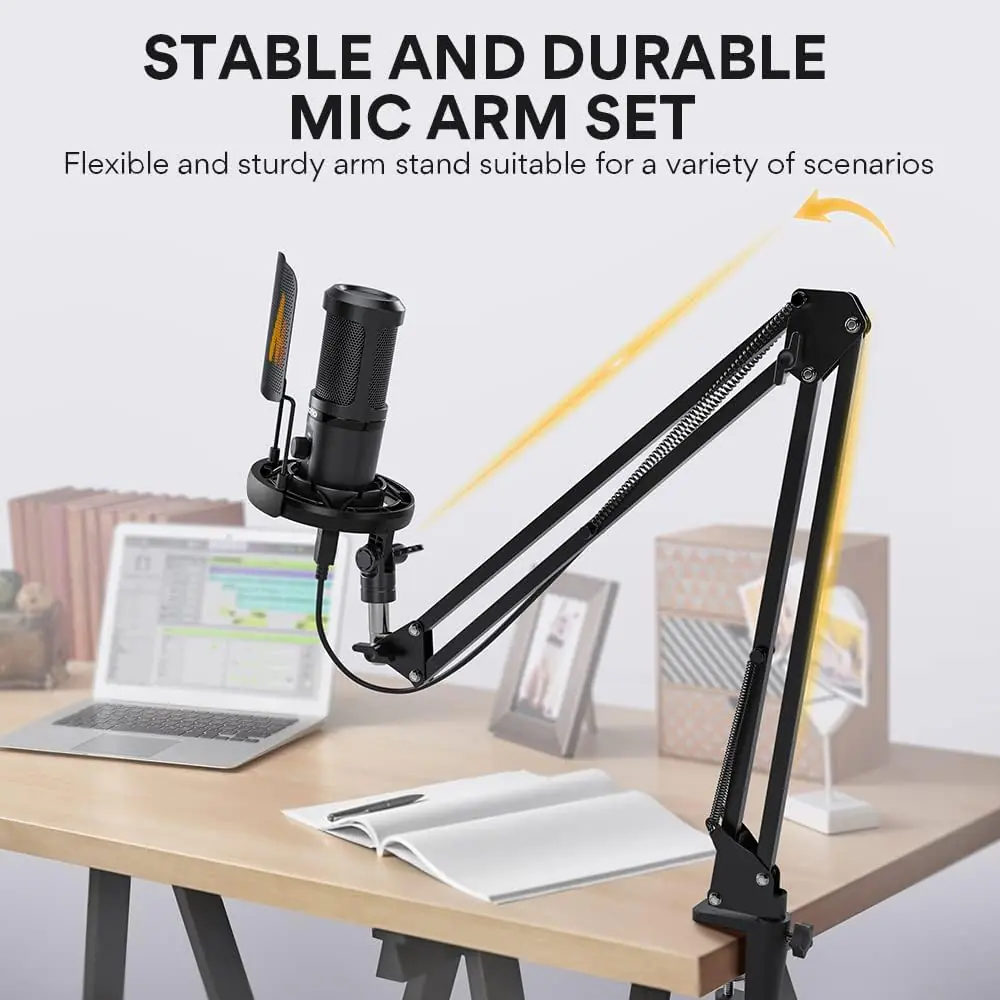 - Included Components: Microphone, USB cable, pop filter, shock mount, arm stand
