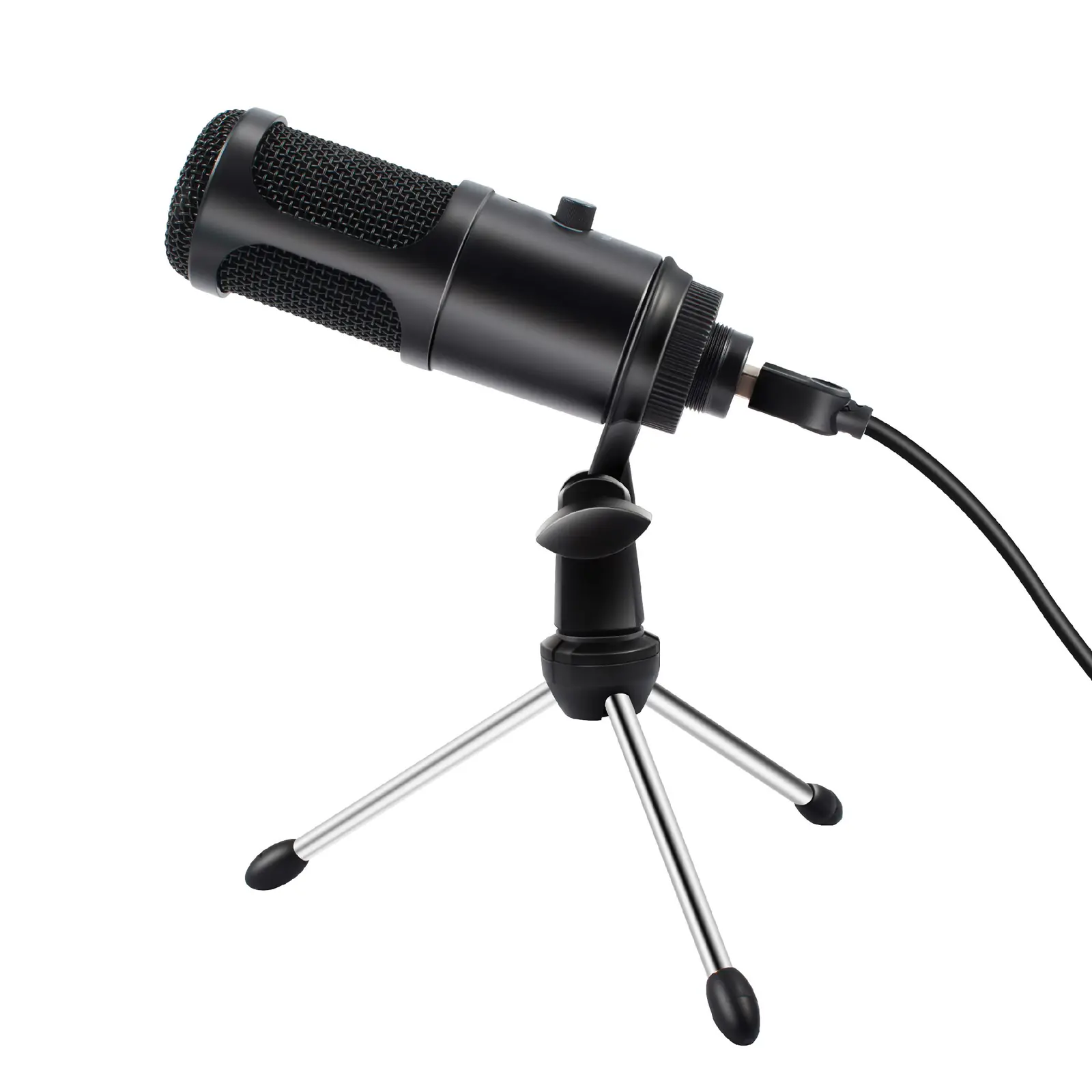 USB Condenser Microphone with LED Indicator Light and Tripod Stand for Sound Recording , Gaming , Studio , & ASMR | Black A6