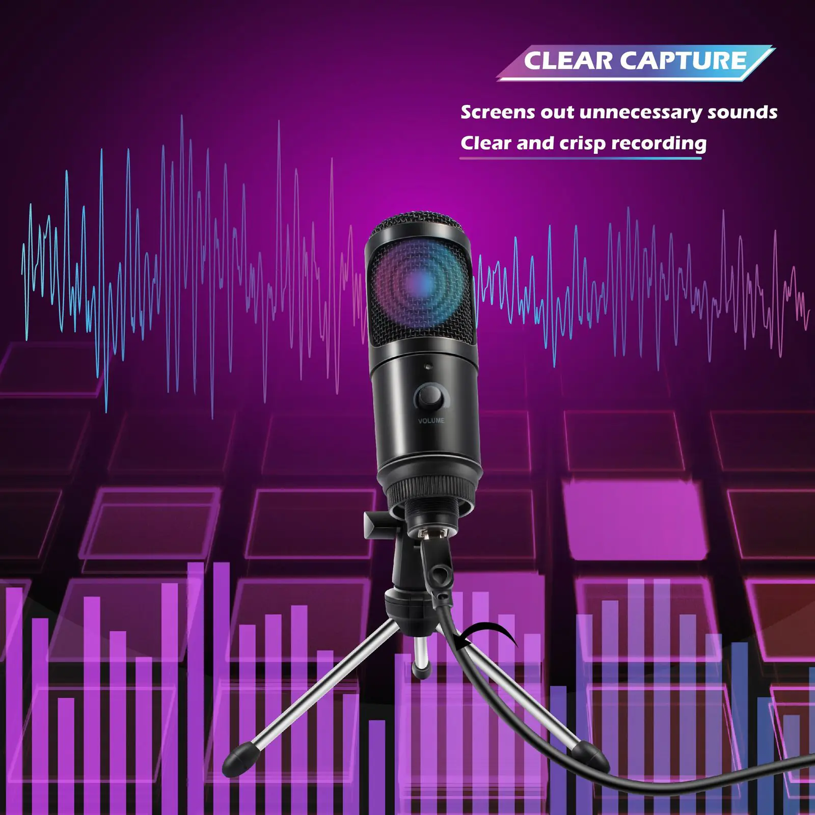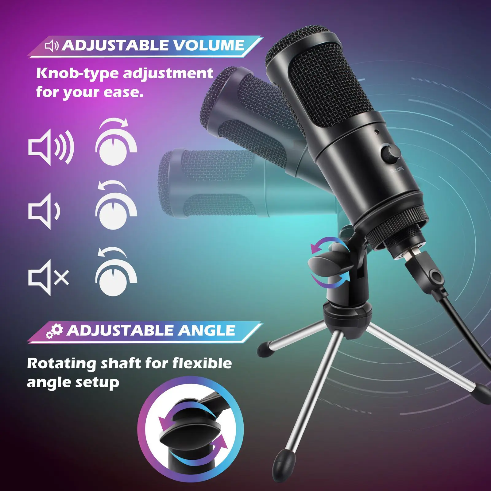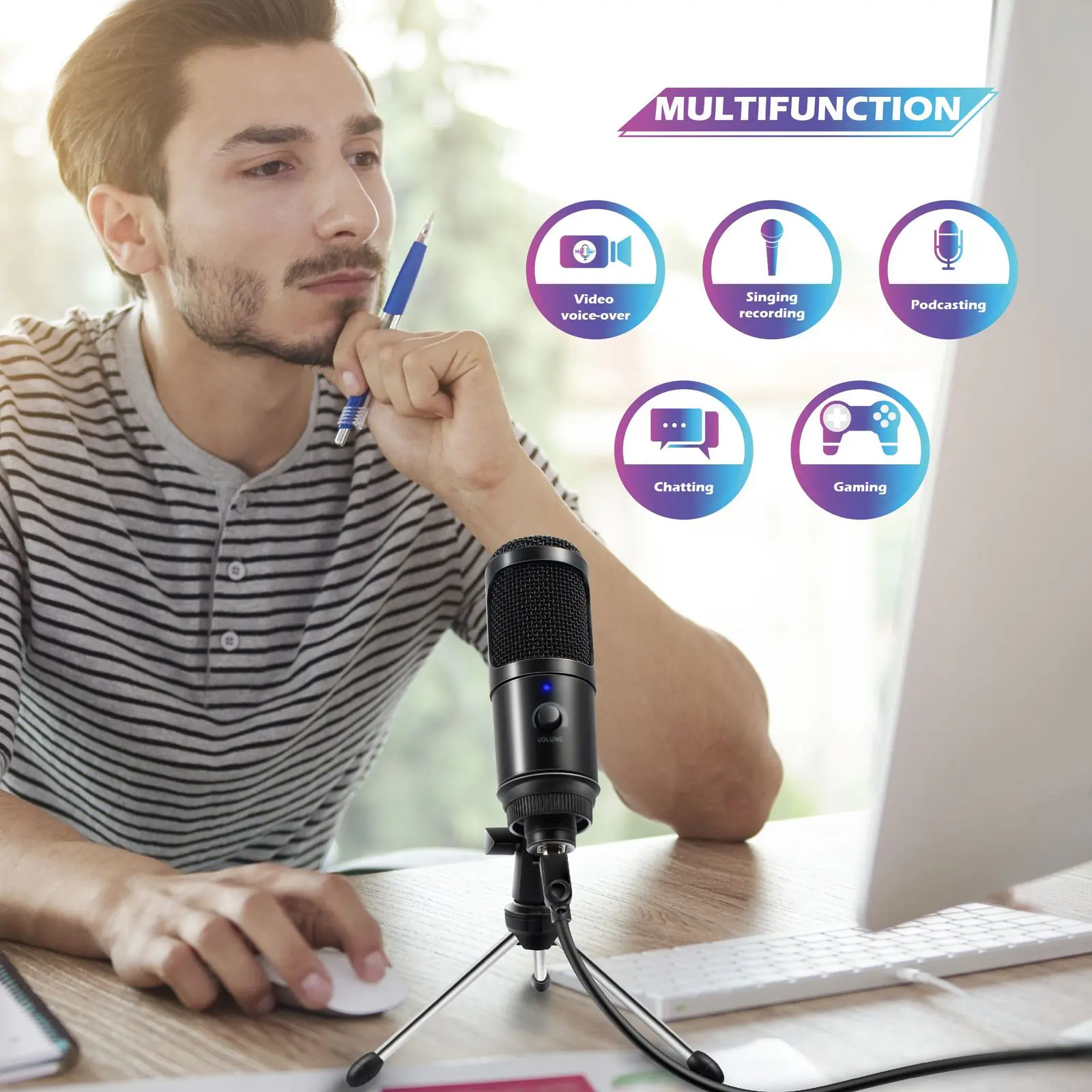 - MICROPHONE FOR YOUR COMPUTER: Simple and easy-to-operate condenser microphone uses USB cable transmission technology. Safe and stable transmission allows for high-quality recording through your computer’s USB port. Perfect for various audio recording such as podcasting, video voice-over, livestreaming, gaming, chatting, musical recording, vocal singing, and more.
