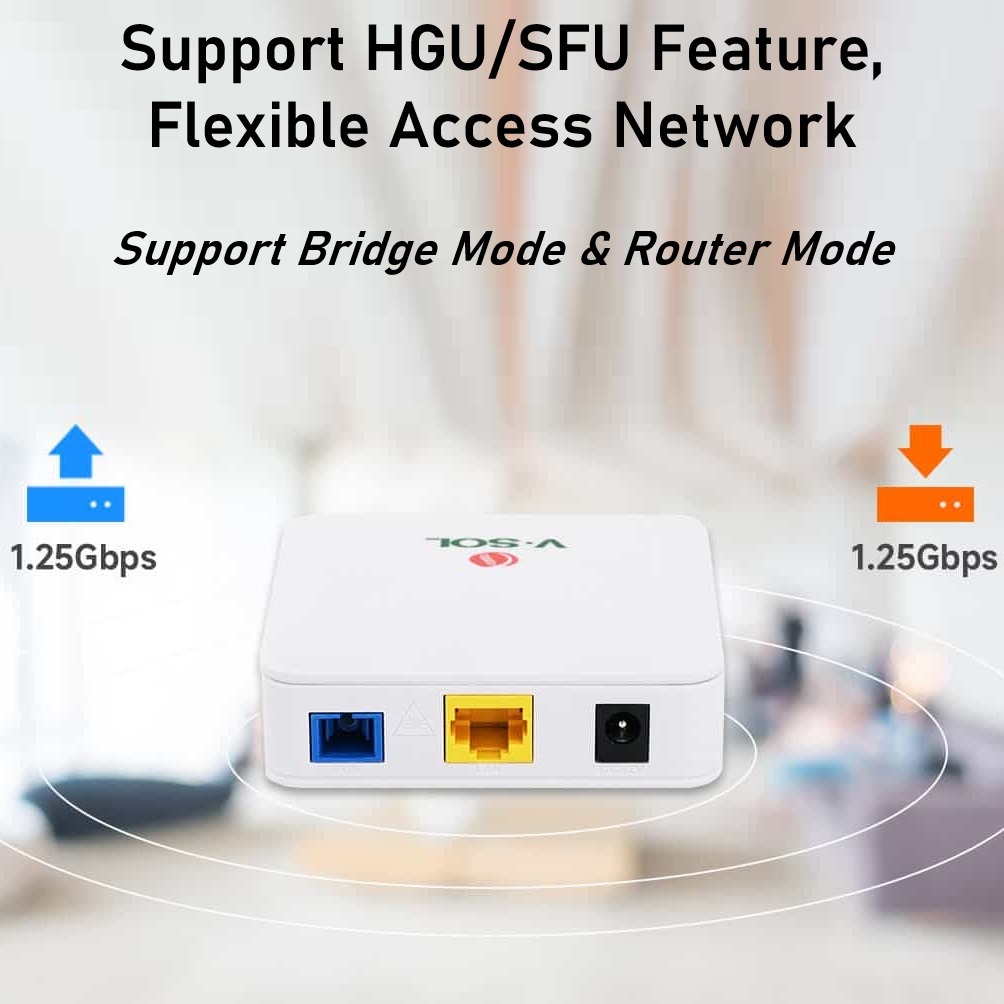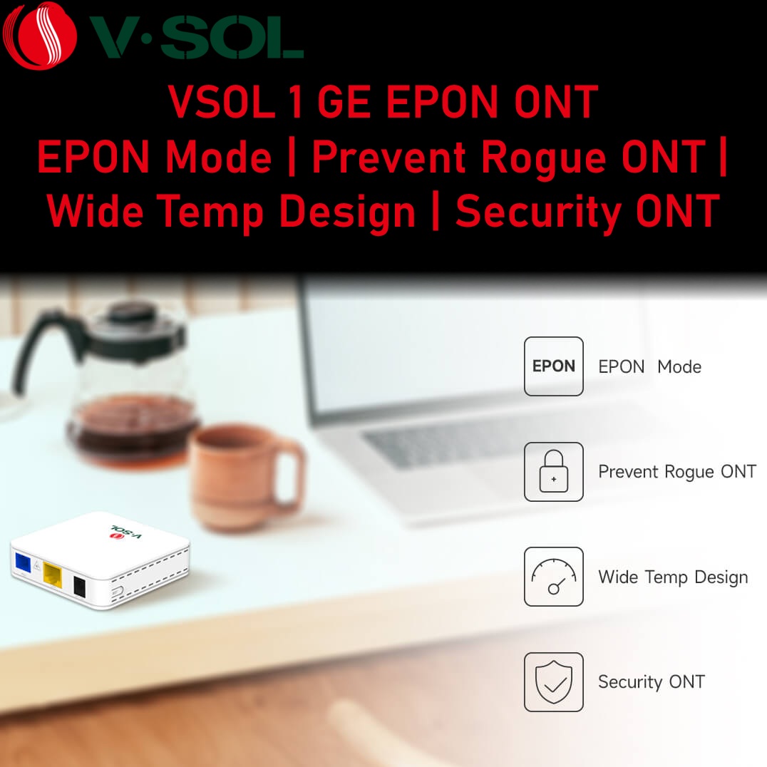V.SOL V2801RE 1GE Secure EPON ONU With 1.25Gbps EPON, Rogue ONU Protection, Bridge And Router Modes, Wide Temperature Design, PX20+ Optical Interface, And Advanced Firewall