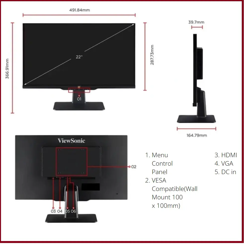 | Wall Mount | VESA Compatible: 100 x 100 mm |