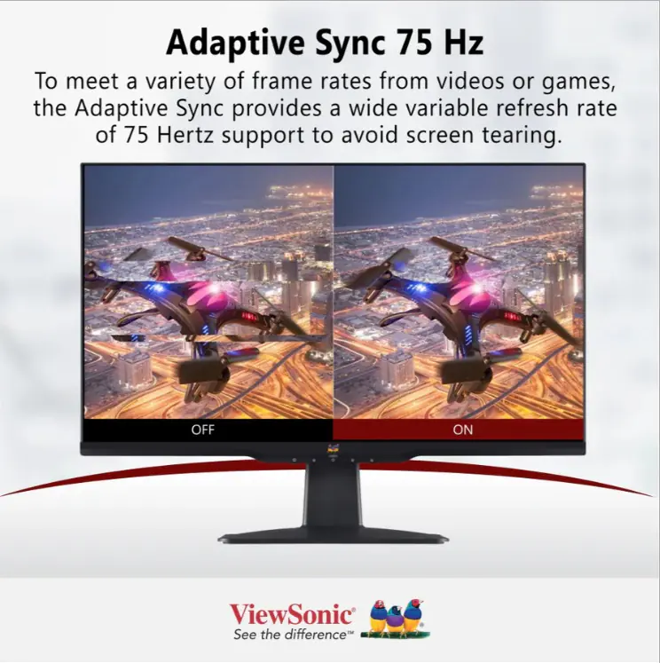 - Adaptive Sync 75Hz to eliminate tearing and stuttering