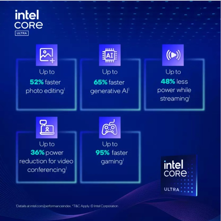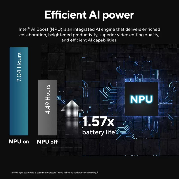 - Processor Intel® Core⢠Ultra 7-155H 1.4 GHz (24MB Cache, up to 4.8G GHz, 16 Cores, 22 Threads) Intel® AI Boost NPU