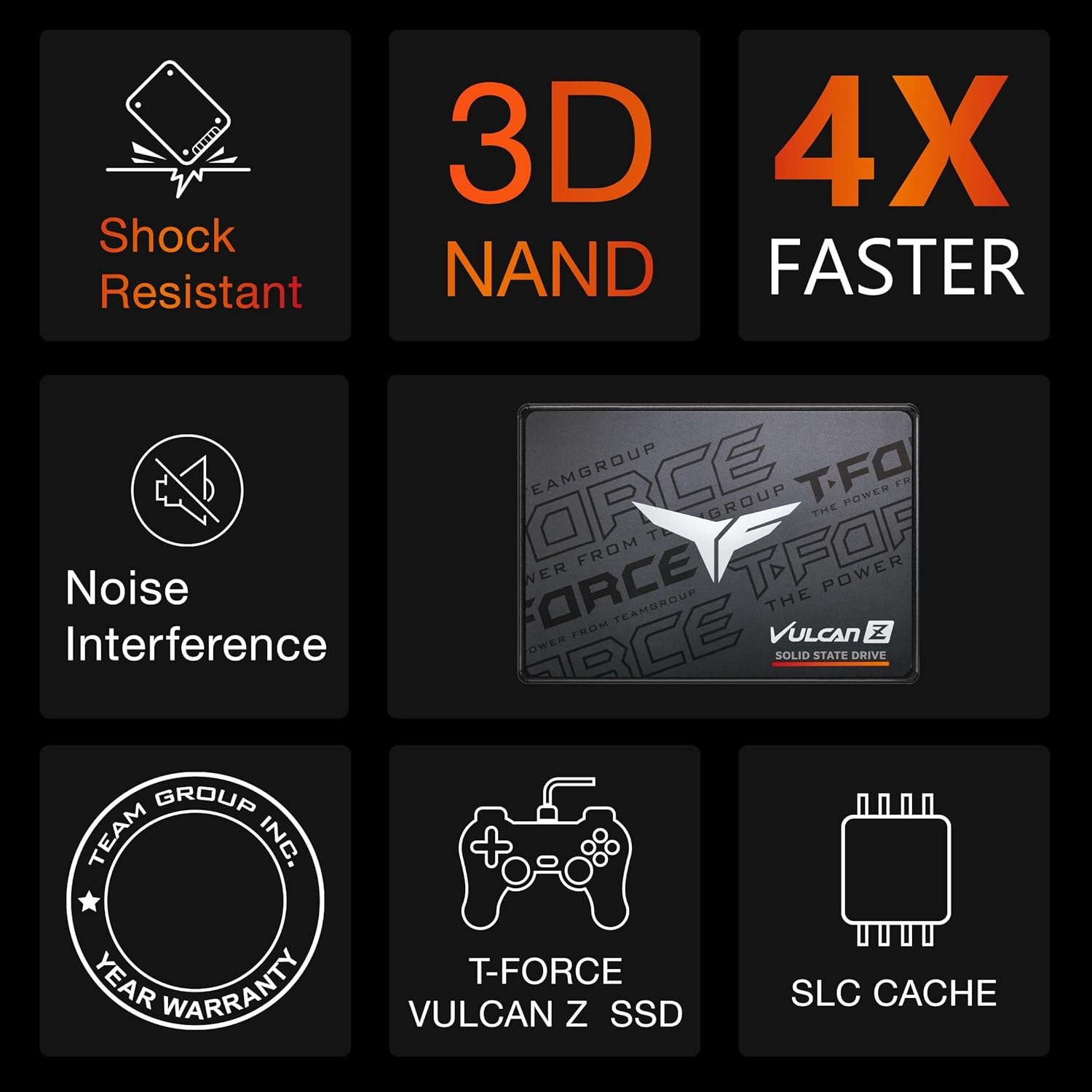 Team Group T-FORCE VULCAN Z 256GB SSD 2.5″ SATA III 3D NAND Internal Solid State Drive ; up to 520 MBPs Read up to 450 MBPs Write ; 200TB ; Shock & Vibration Resistant | BLACK T253TZ256G0C101