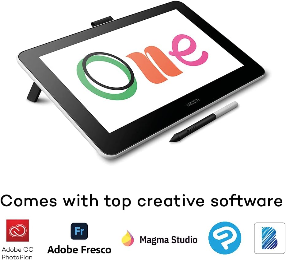 Wacom One Creative Pen Display with free software (for sketching, drawing on screen, 13.3 inch full HD display (1920 x 1080), pen precision) – ideal for home office & e-learning