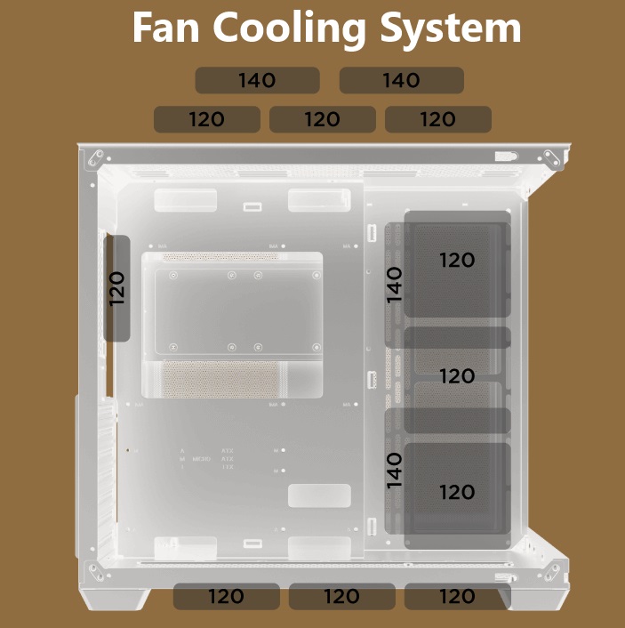- Top: 120mm x3 or 140mm x2
