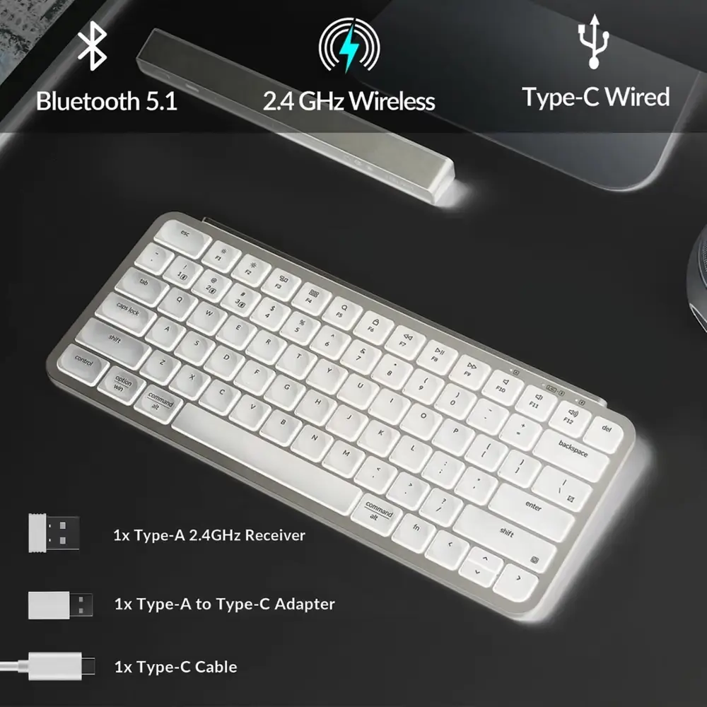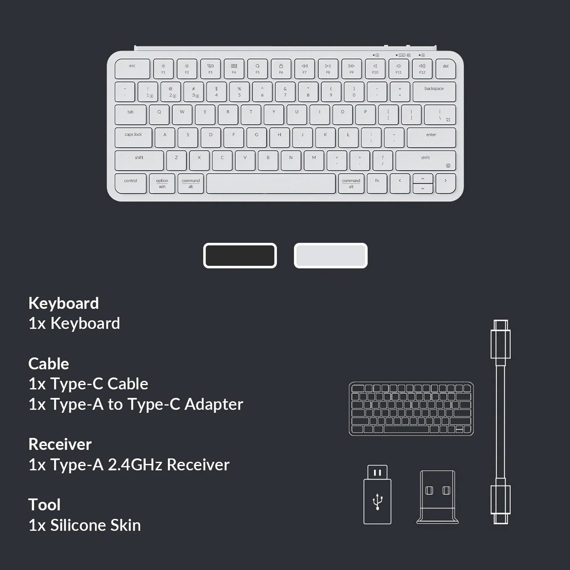 - Cross-Platform Compatibility: Designed with a Mac layout while fully compatible with Windows. Retain multimedia and function key functionalities, with easy keymap configuration for both operating systems.
