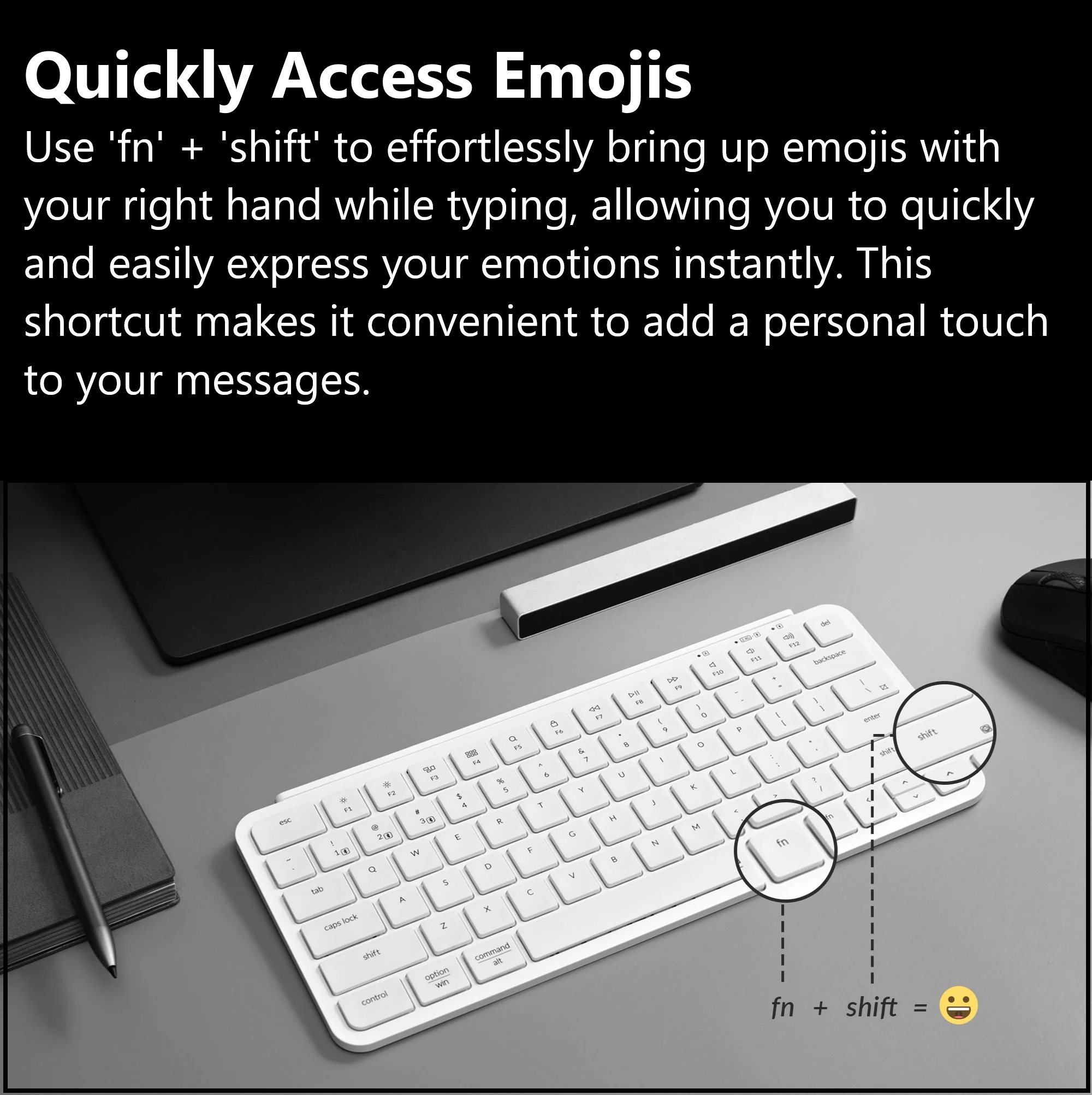 - Quick Emoji Access: Easily access emojis using the ‘fn’ + ‘shift’ shortcut, enabling quick expression during your communications.