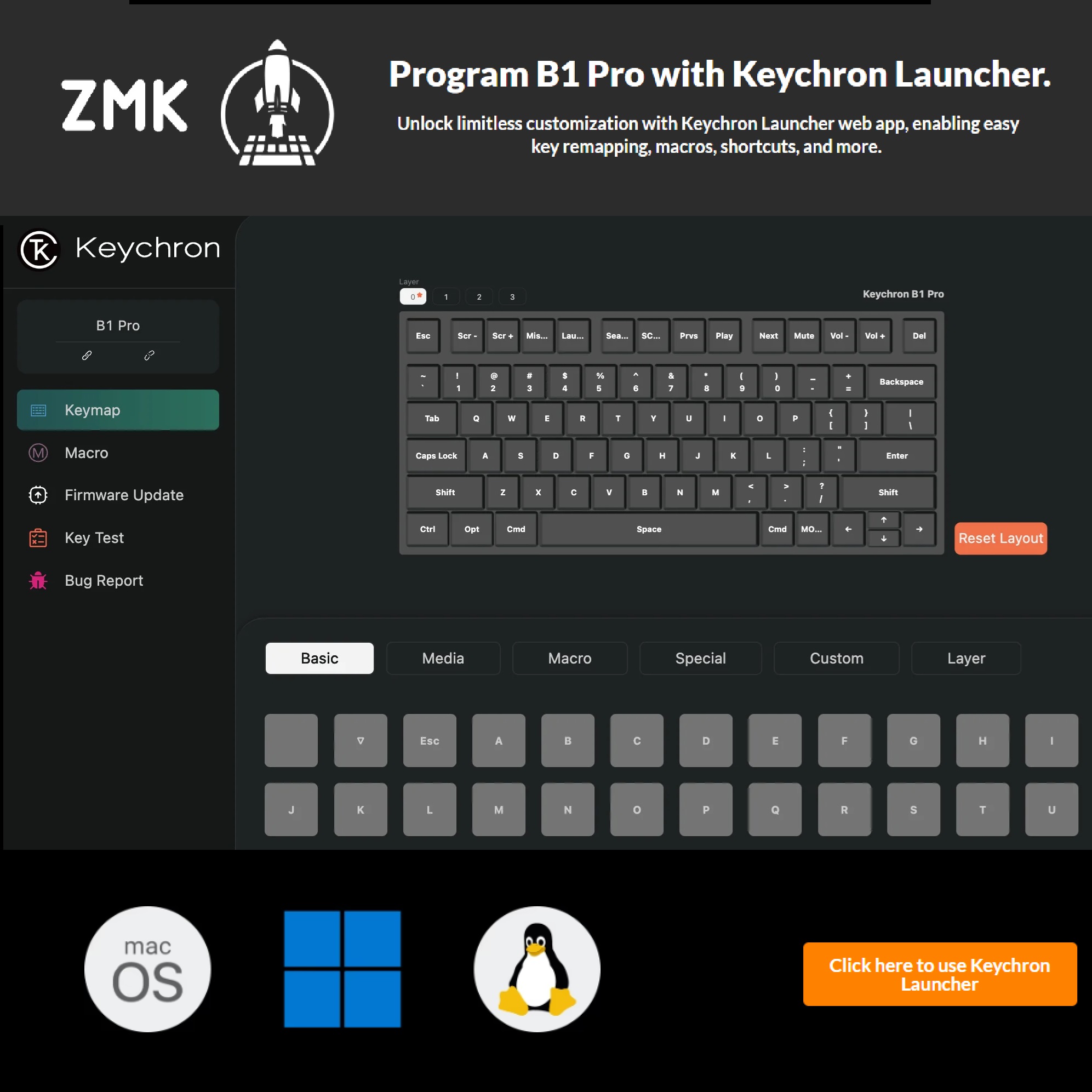 - Customizable Features with ZMK: Leverage the Keychron Launcher web app for comprehensive customization, including key remapping, macros, and shortcuts, enhancing your typing experience.