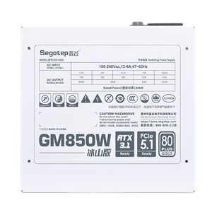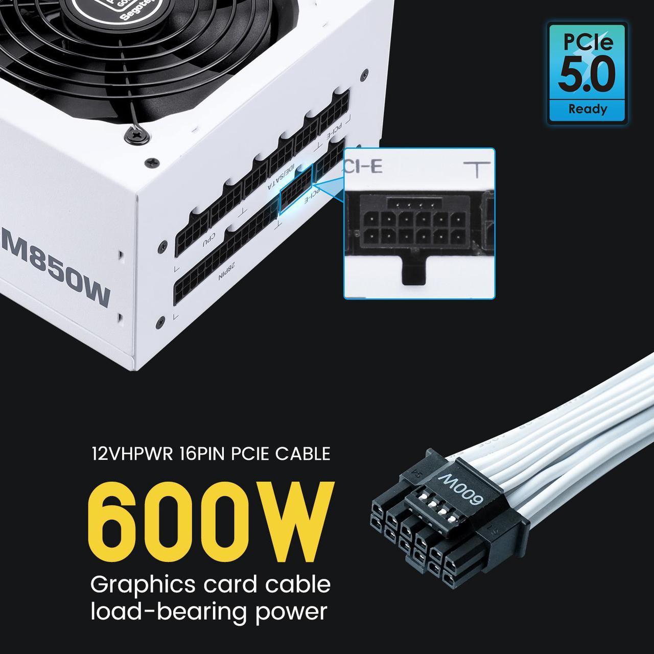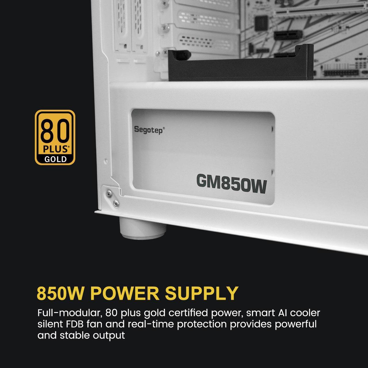 Segotep GM850W White 850W PCIe 5.0 Full Modular 80 Plus Gold PSU ATX 3.1 Gaming Power Supply, 12VHPWR Cable, 12+4PIN port and Dual 6+2Pin ports for Different Graphics Cards, Silent Fan mode | WHITE