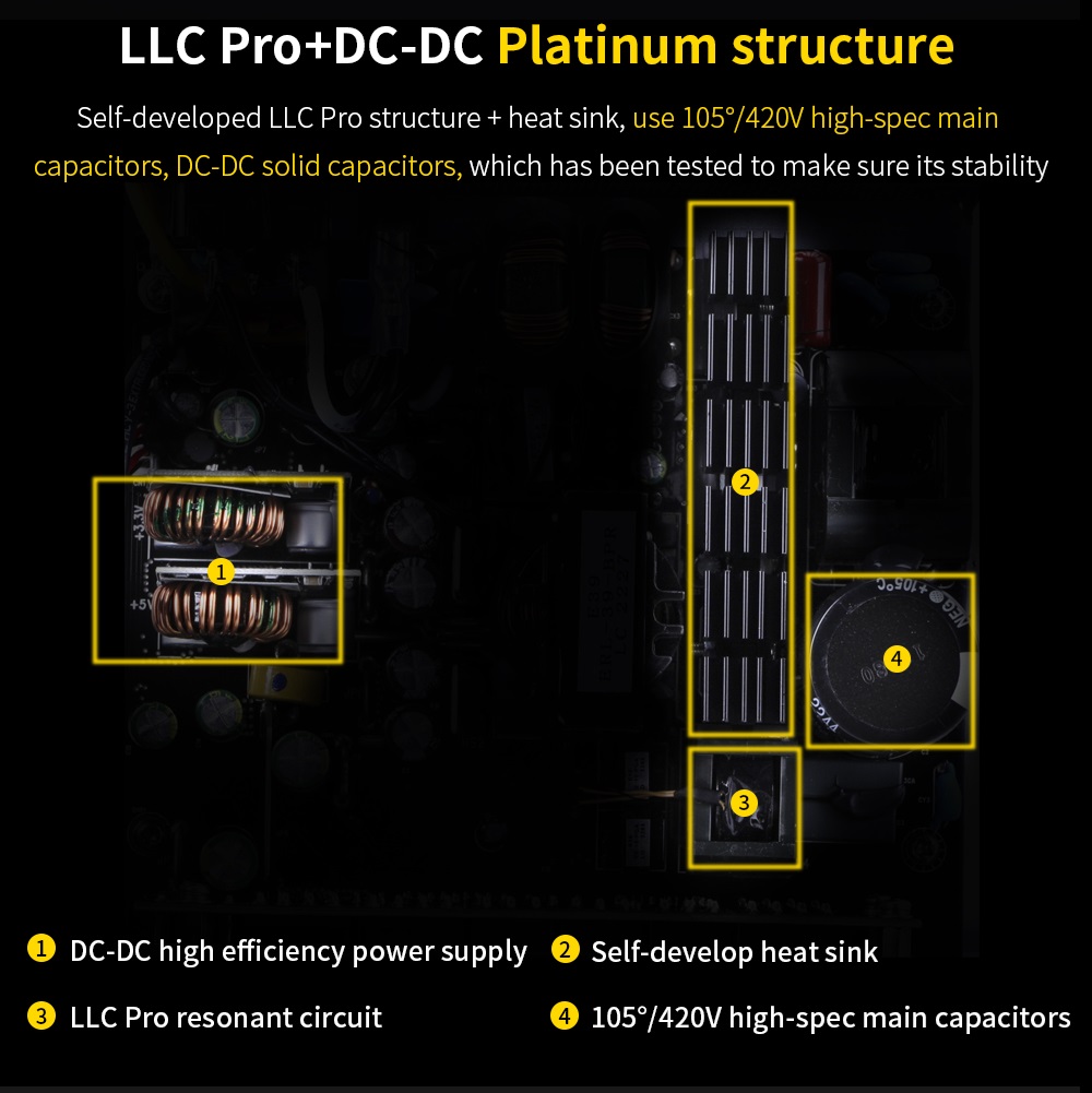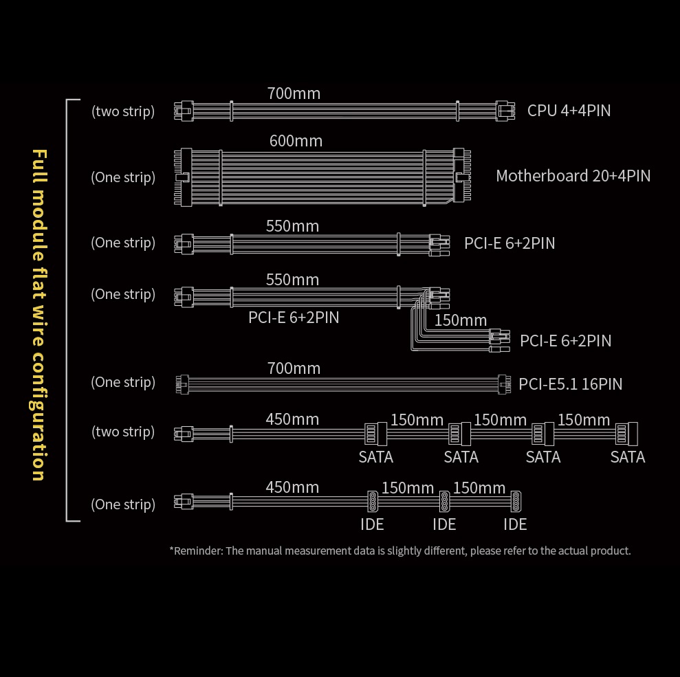 - [Fully Modular] Full module with flat white cables, improve airflow & strengthen cable management.