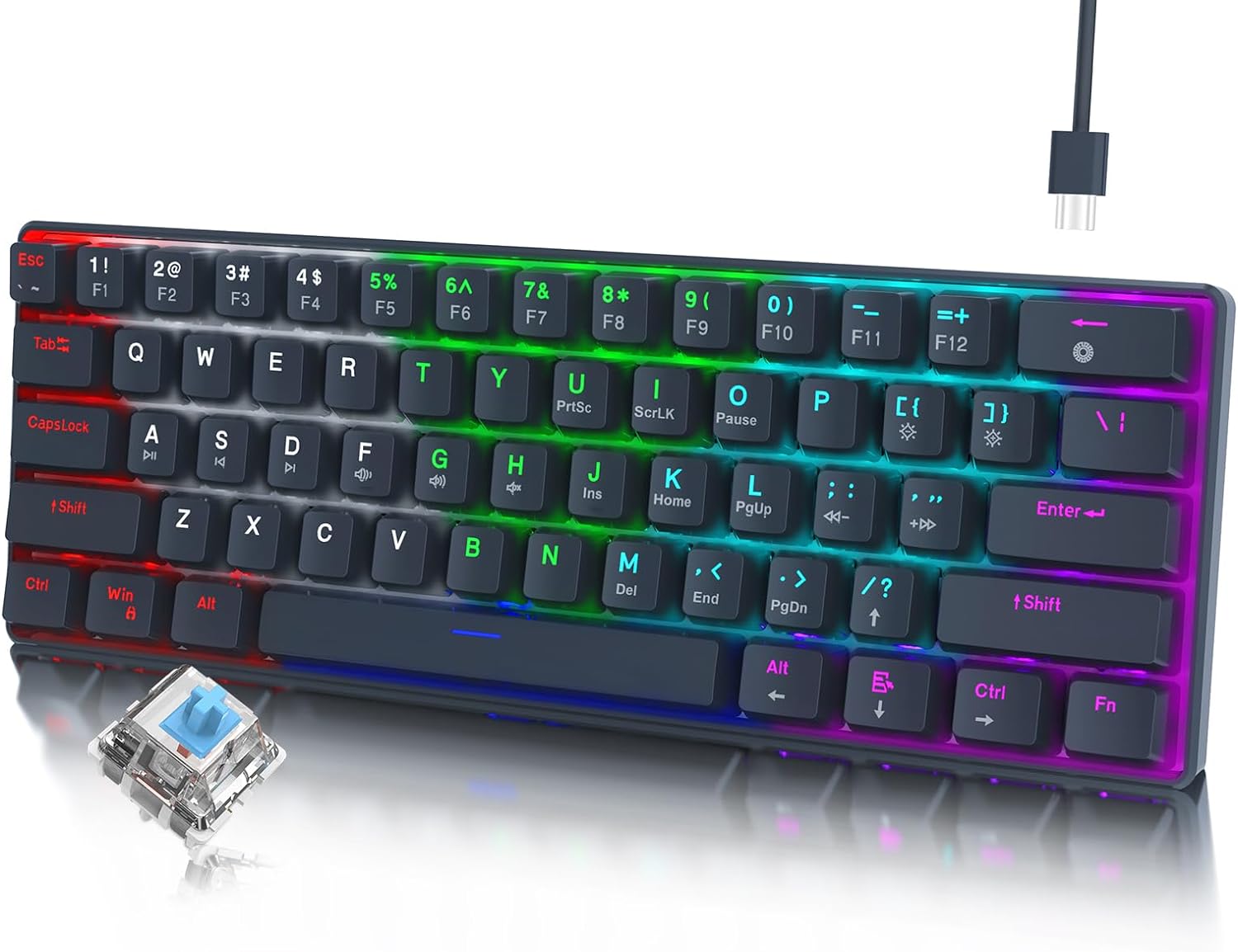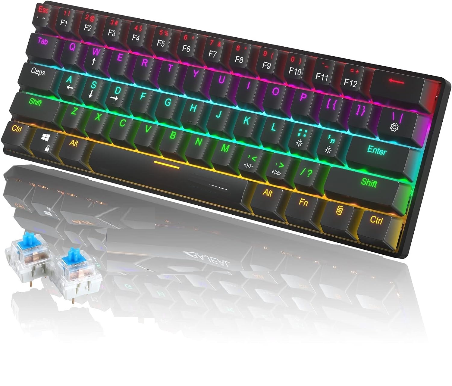 BAJEAL Wired Gaming Mechanical Keyboard 60% Type-C RGB Backlit Ultra-Compact 61 Keys Mini Teclado Hot Swappable 60 Percent with Blue Switches for PC