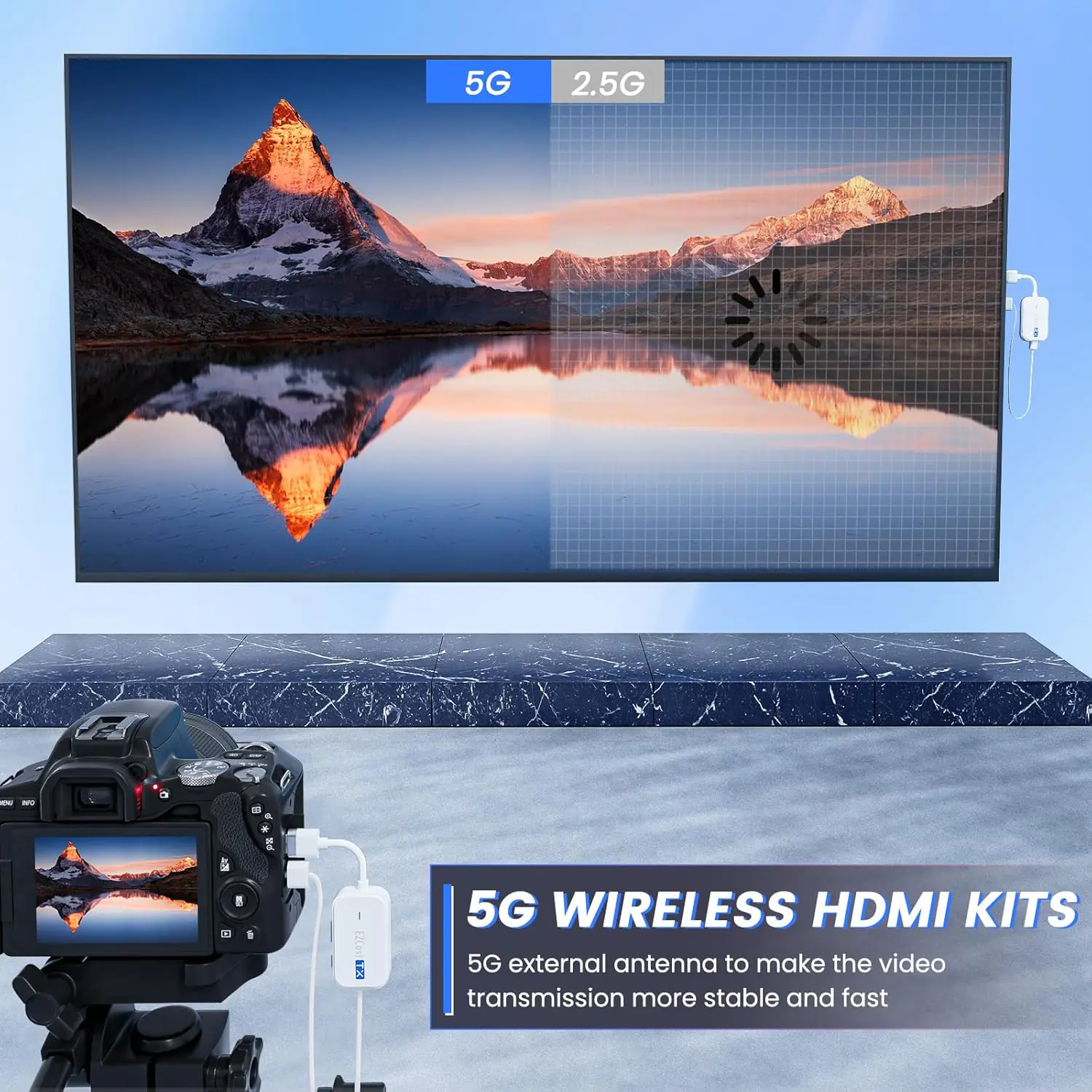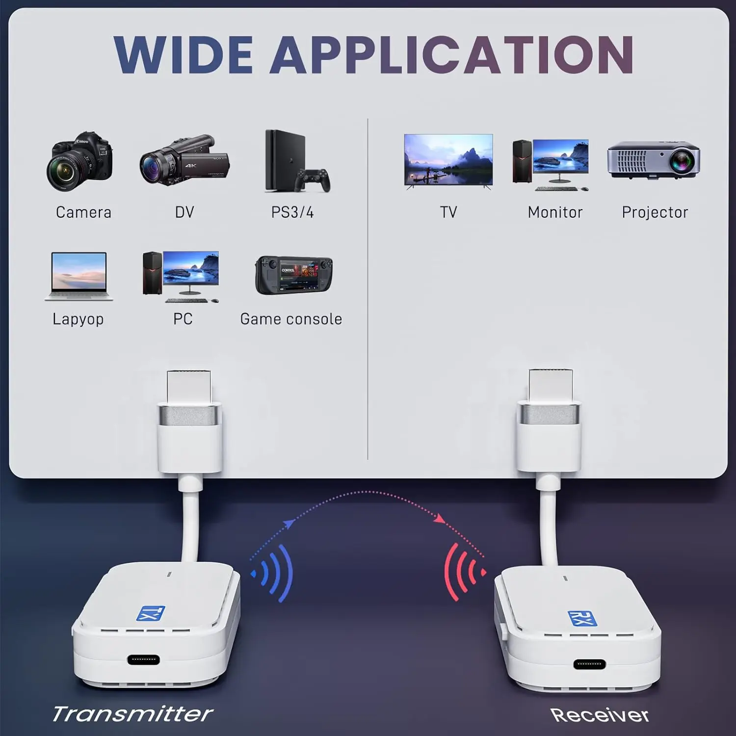 - 【Wide Compatibility】Lightweight and easy to carry, this wireless HDMI meet the functions of daily office meetings and home video and audio sharing. Compatible with most HDMI output devices, laptop, PC, Blu-ray Player, Camera,Cable/Satellite boxes, tablet and more.