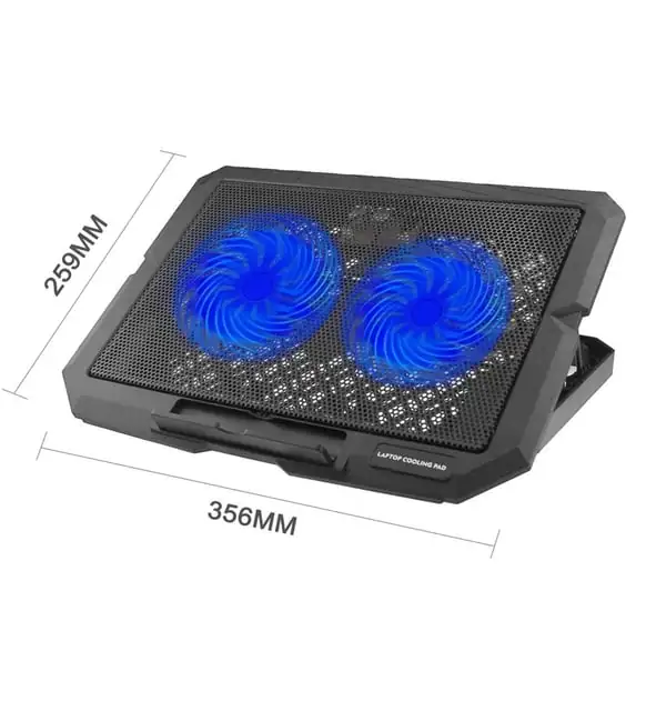 X3 Laptop Cooler – Dual 140mm Silent Fans, RGB Lights, 8-Level Adjustable Stand, USB-Powered, Ultra-Thin Design, 356×259×28mm, Plastic & Metal