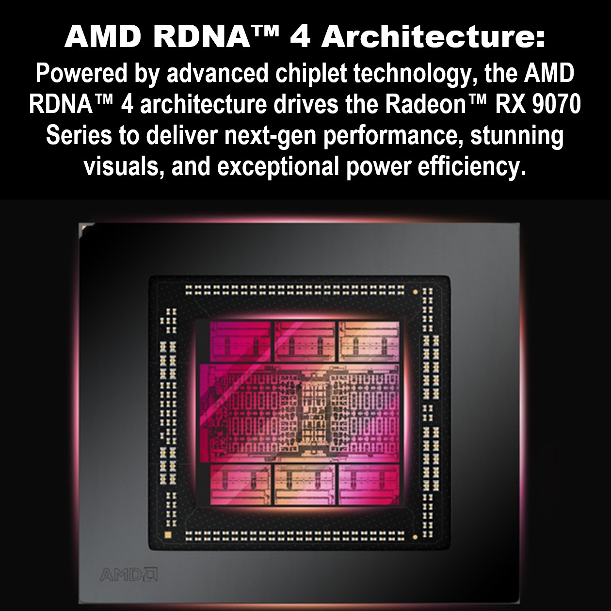 - RDNA™ 4 Compute Armada – 64 unified compute units with RT+AI accelerators delivering next-gen raytracing, faster AI-boosted visuals, and ultra-smooth rendering across all resolutions.
