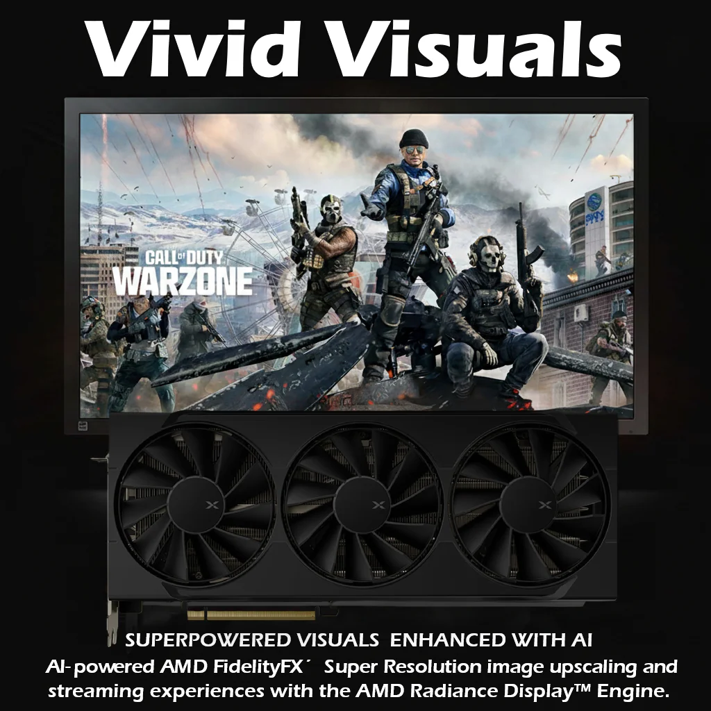 - Visuals Enhanced with AI: FidelityFX Super Resolution 4 and advanced frame generation upscale your visuals for crisp detail and ultra-smooth gameplay.