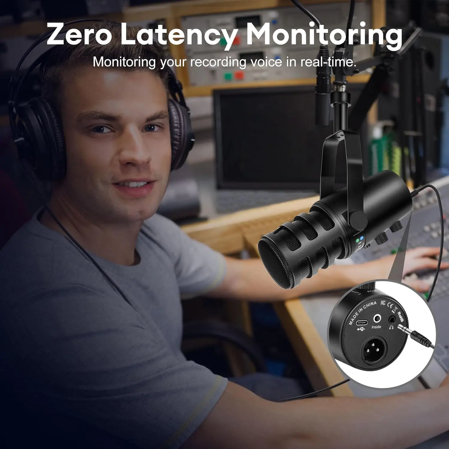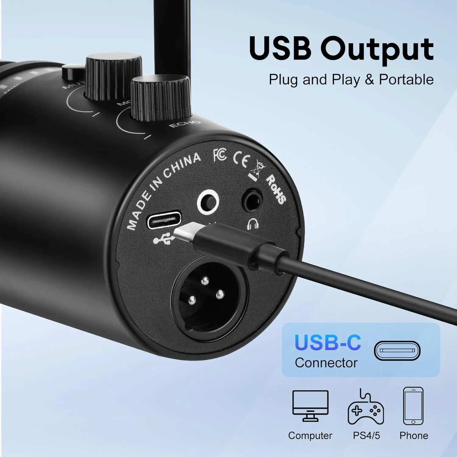 - [Upgrade-able XLR Connection] : The dynamic microphone can also be upgraded to an XLR connection. The XLR interface outputs analog signals, which enhances the sense of audio space for an immersive podcast experience. The XLR mic is external power source required, it supports connections to an audio interface and mixer.(Note: This product does not come with an XLR cable)