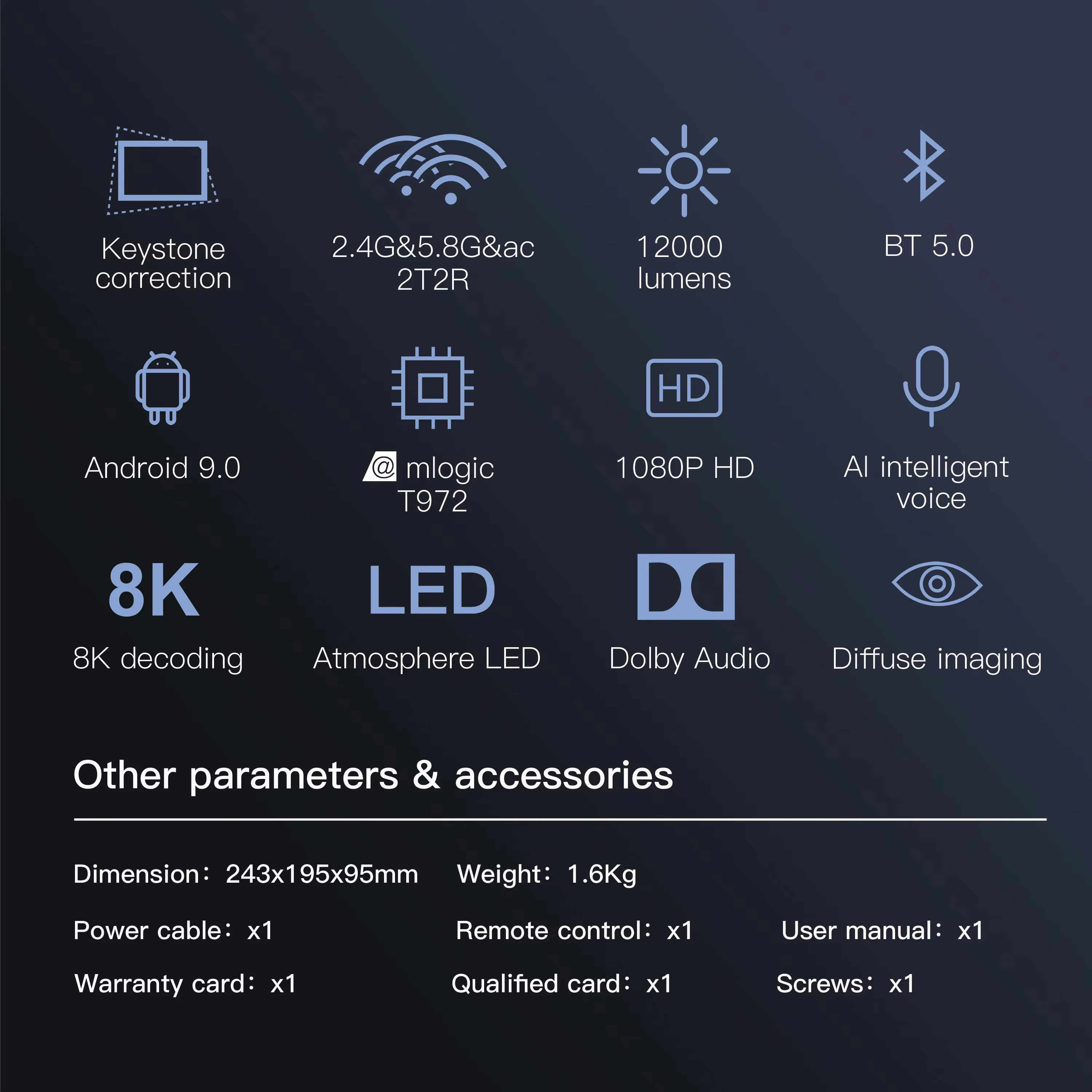 XNANO X1 8K/4K Smart Projector – Real 1080P, Android 9, WiFi & Bluetooth, Voice Control, 2GB/16GB, 300 ANSI Lumens + Remote & Carrying Bag – Silver